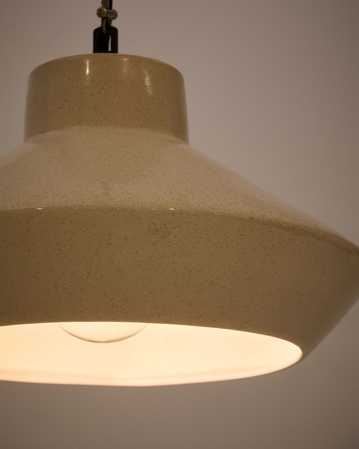 Потолочная лампа Portol из бежевой керамики — это изделие, сочетающее элегантность и простоту в неподвластном времени дизайне. Её прочная, но изящная конструкция, изготовленная из глазурованной керамики, отличается уникальными оттенками, которые немного отличаются у каждой лампы, что делает каждую из них эксклюзивным предметом. Глазурь придаёт изделию тёплый оттенок, который идеально вписывается в современный, деревенский или минималистичный интерьер. Совместимая с лампочками E27 мощностью до 40 Вт (не входят в комплект), эта лампа обеспечивает мягкое и приятное освещение, идеально подходящее для создания уютной атмосферы в любом помещении вашего дома, от столовой до спальни. В дополнение к этому элегантному бежевому оттенку, он также доступен в изысканном зеленом цвете, предлагая универсальные варианты для различных стилей оформления. Придайте вашему дому нотку индивидуальности с помощью этой лампы, которая выделяется своим характером и дизайном, придающим освещению стиль и теплоту.