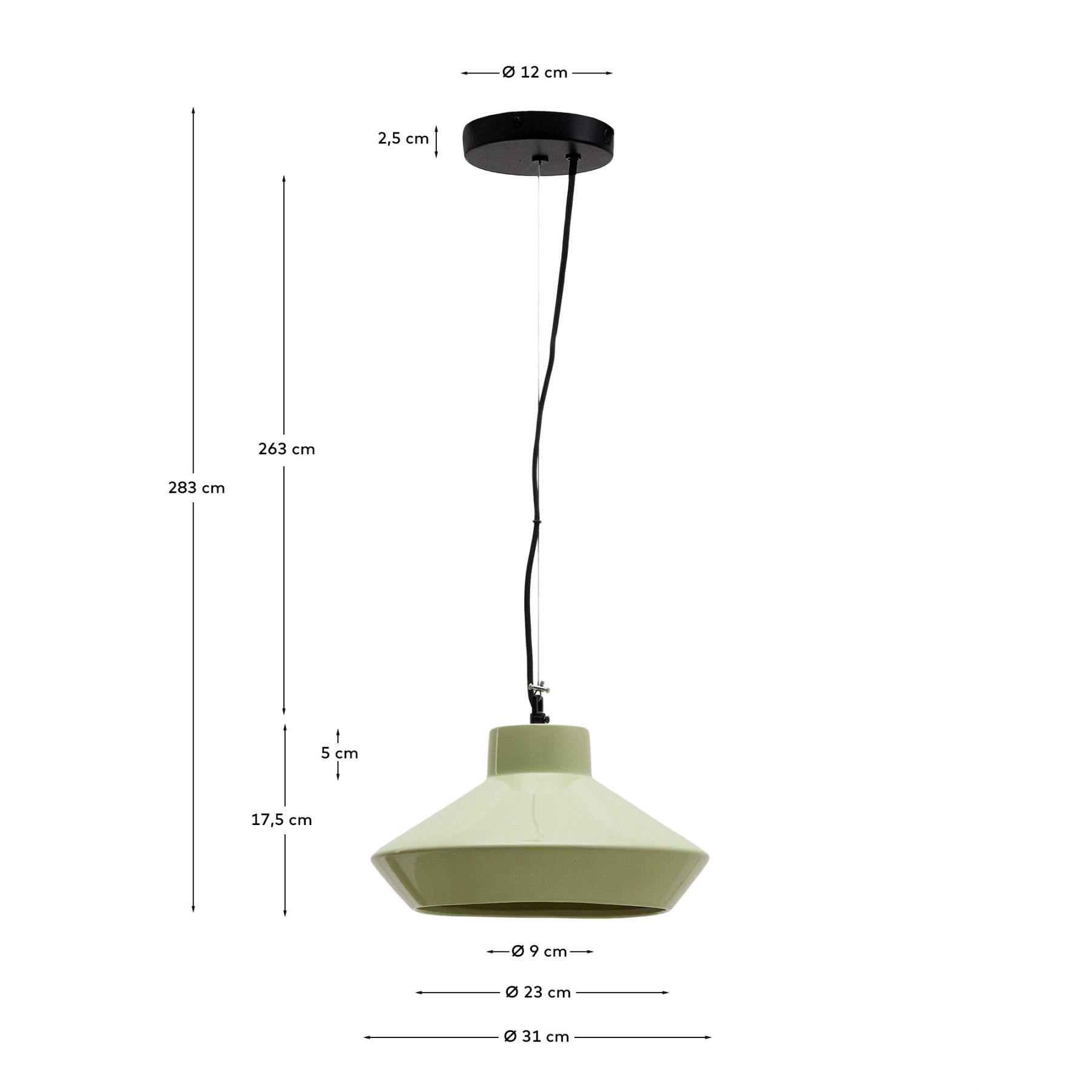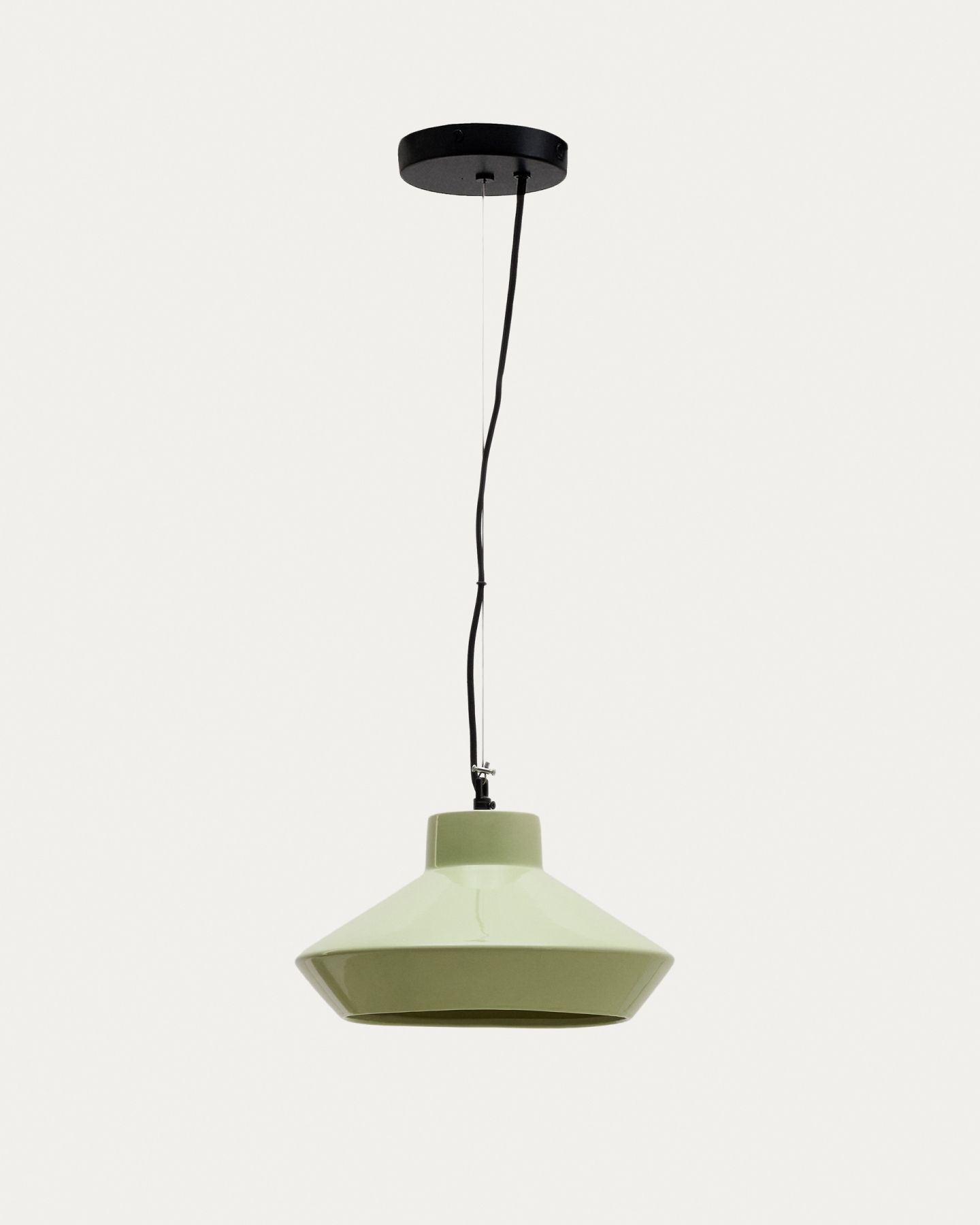 Зелёная керамическая потолочная лампа — это изделие, сочетающее элегантность и простоту в неподвластном времени дизайне. Её прочная, но изящная конструкция, изготовленная из глазурованной керамики, отличается уникальными оттенками, которые немного отличаются у каждой лампы, что делает каждую из них эксклюзивным предметом. Глазурь придаёт изделию тёплый оттенок, который идеально вписывается в современный, деревенский или минималистичный интерьер. Эта лампа, совместимая с лампочками E27 мощностью до 40 Вт (не входят в комплект), обеспечивает мягкое и приятное освещение, идеально подходящее для создания уютной атмосферы в любом помещении вашего дома, от столовой до спальни. Помимо элегантного зелёного оттенка, он также доступен в изысканном бежевом цвете, что позволяет использовать его в различных стилях оформления. Придайте своему дому индивидуальность с помощью этой лампы, которая отличается своим характером и дизайном и обеспечивает стильное и тёплое освещение.