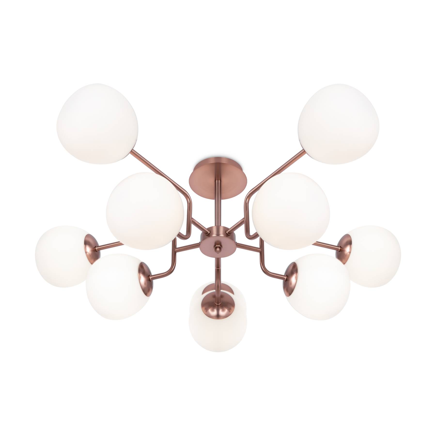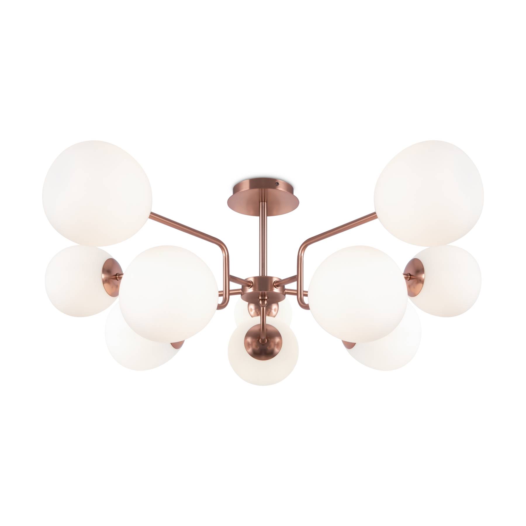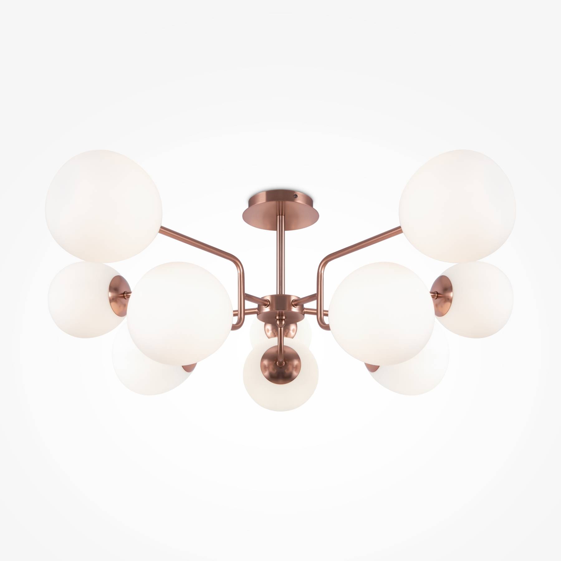 Металлическая арматура, цвет – никель, латунь. Плафоны – выдувное стекло белого цвета. Широкая семья. У торшера и настольной лампы можно изменять положение плафона. Регулируемая высота.