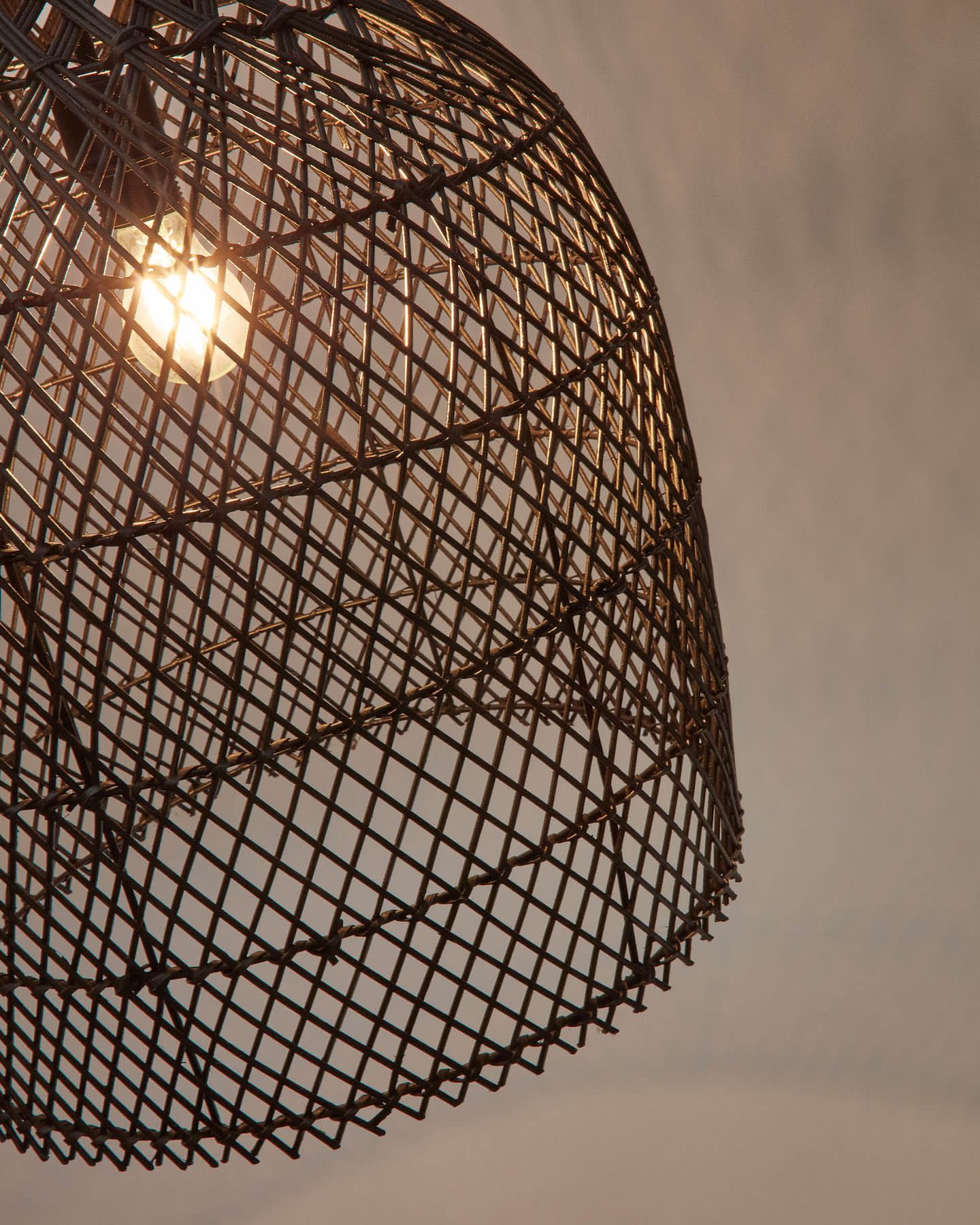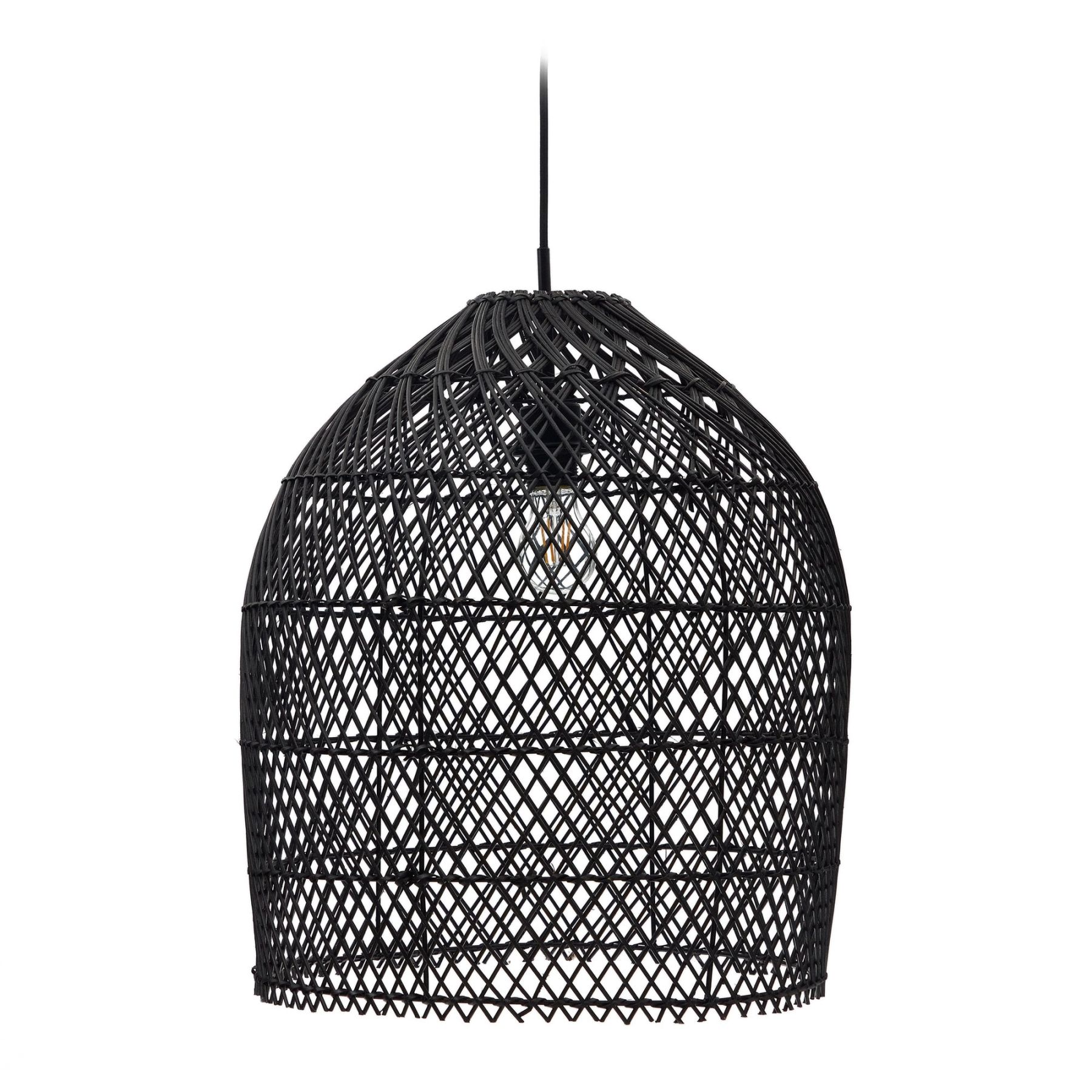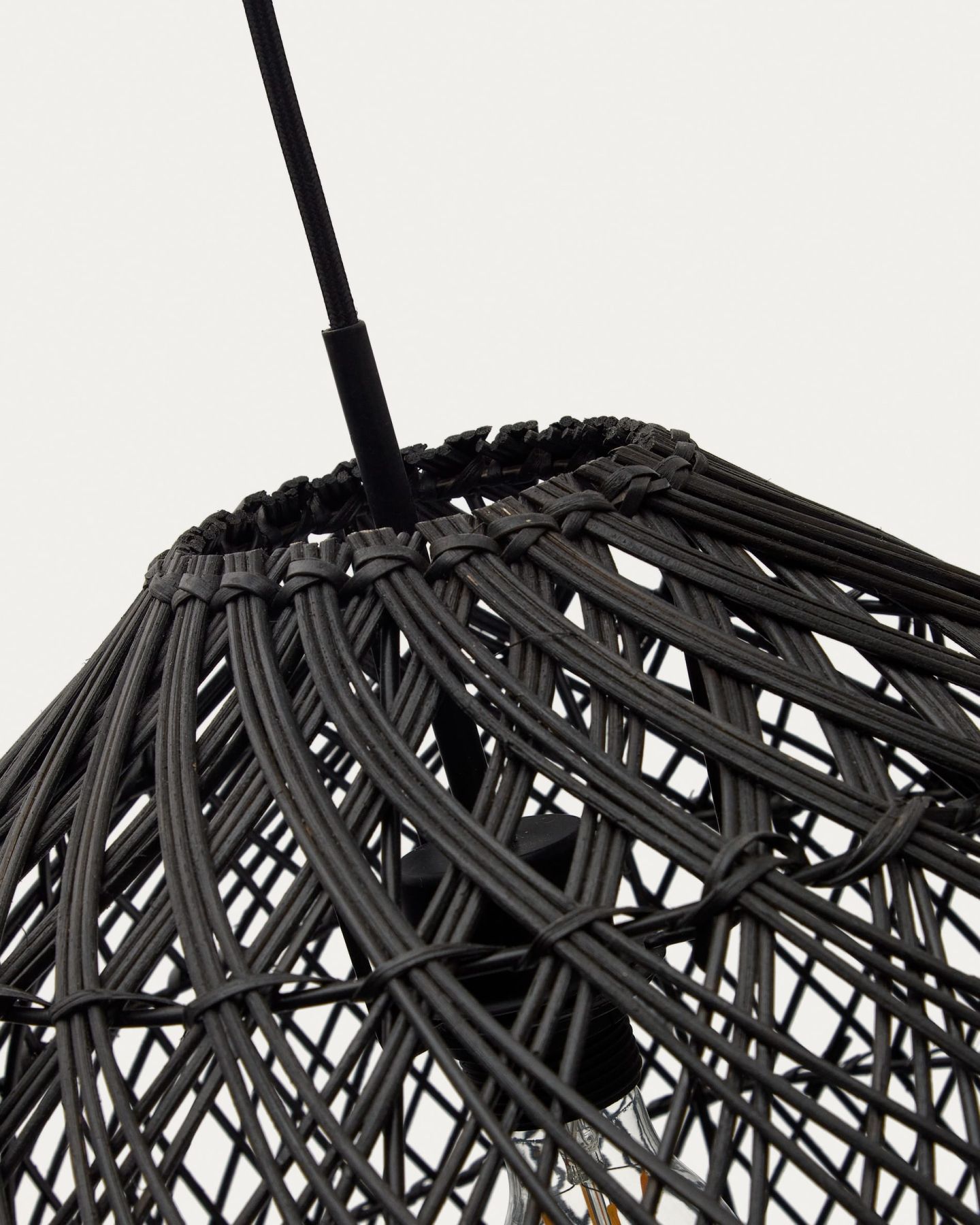 Потолочный абажур из ротанга окрашен в черный цвет, 44 см в диаметре.
