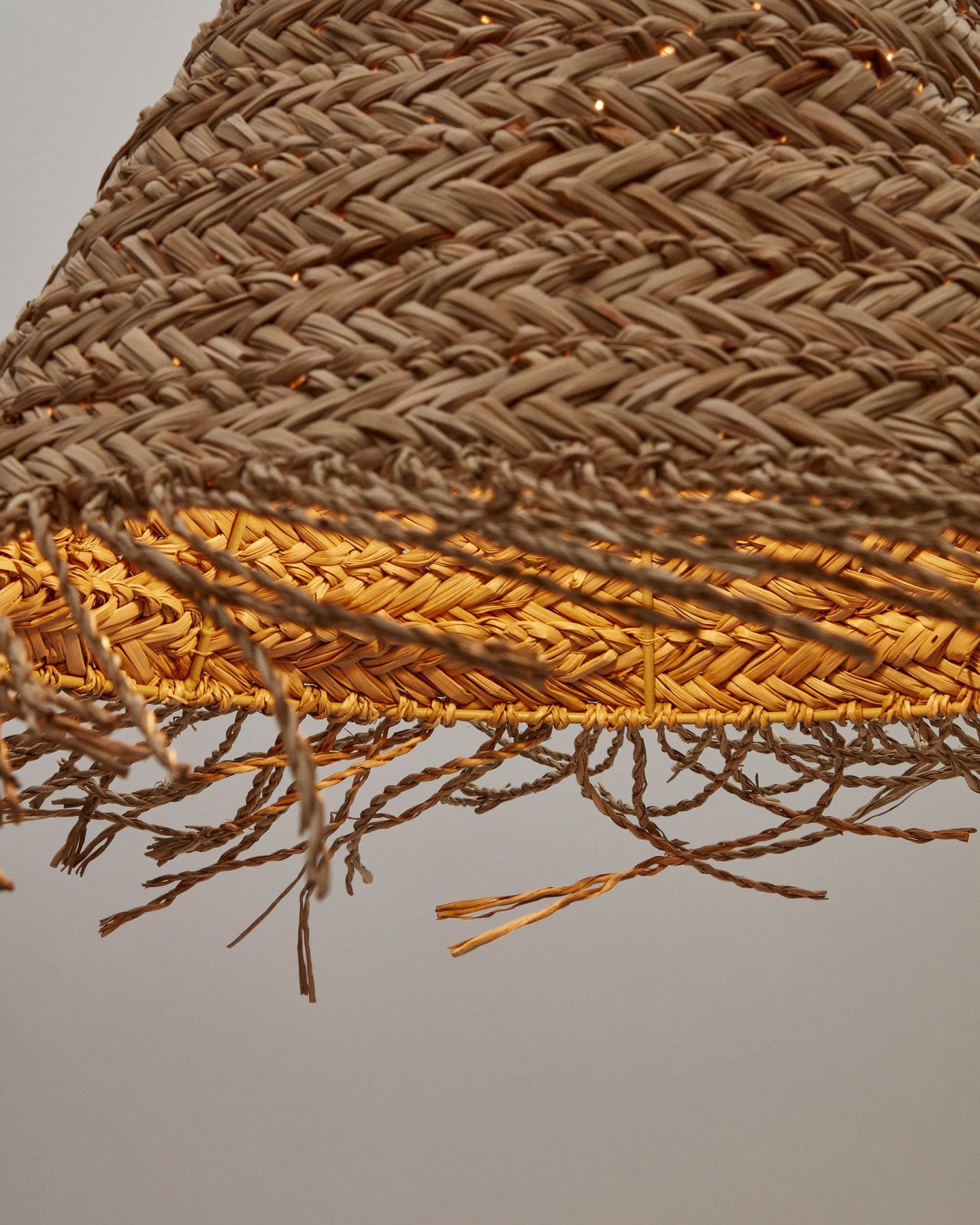Потолочный абажур из натурального волокна с натуральной отделкой. 40 см в диаметре. Ручное плетение с использованием ремесленных техник. Натуральные материалы с уникальными тонами и текстурами, которые делают каждое изделие уникальным. Лампочка, крепления и кабели в комплект не входят, так что вы можете настроить дизайн своей лампы на 100%.