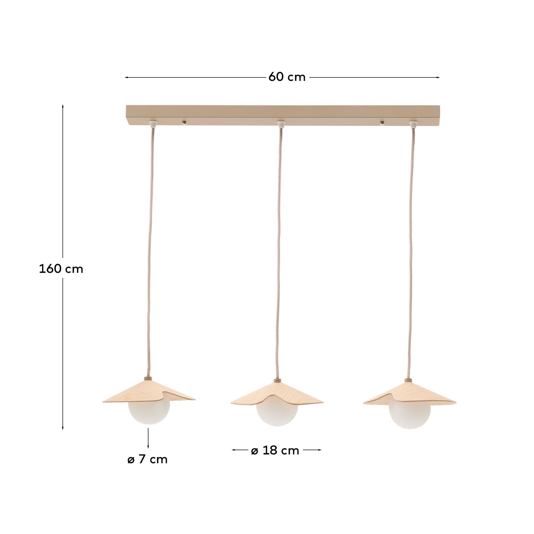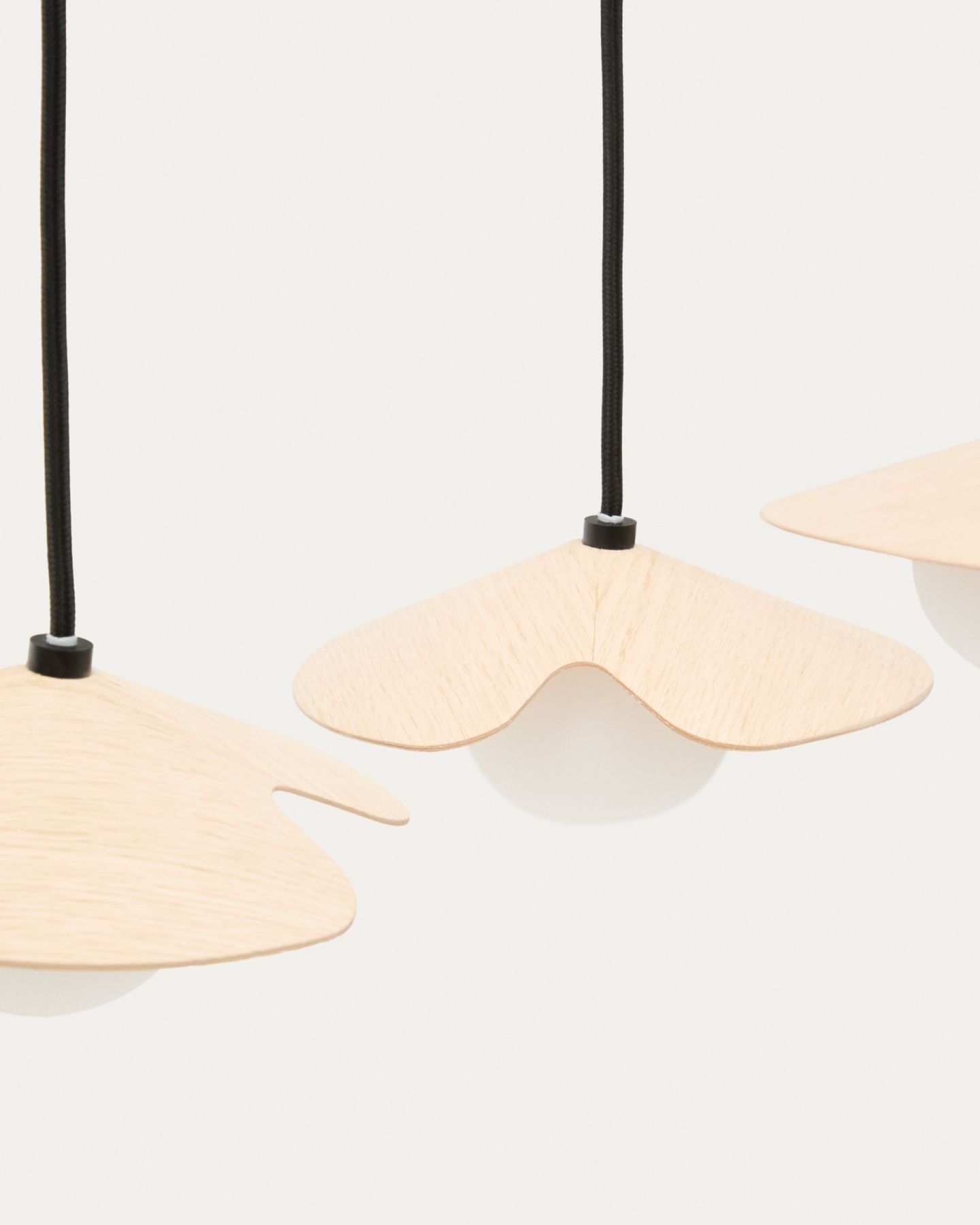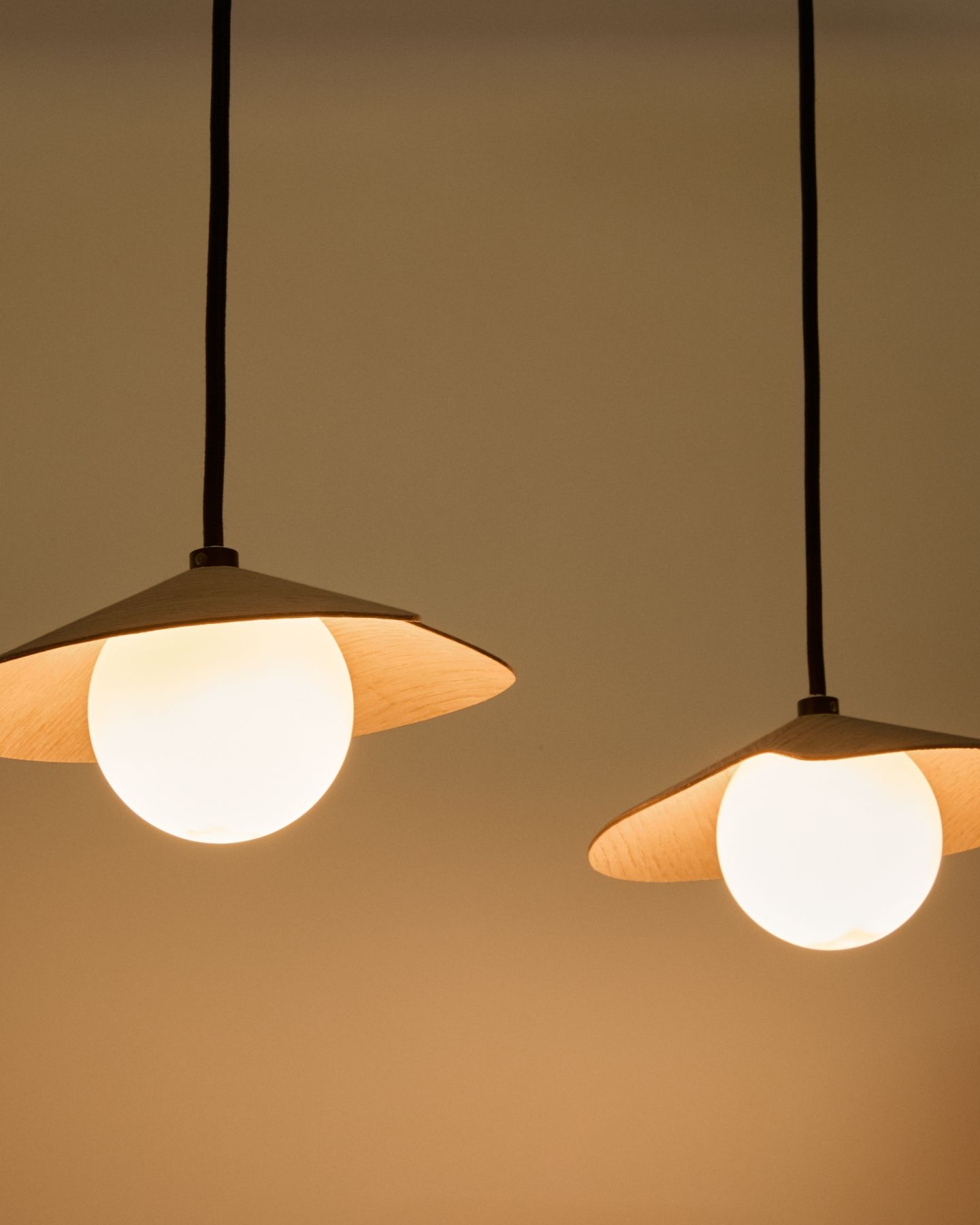 Откройте для себя естественную элегантность этой потолочной лампы, которая сочетает в себе теплоту дубового шпона и утончённость трёх белых сфер из дымчатого стекла, создавая неподвластный времени дизайн. Это изделие освещает и придаёт утончённость любому пространству, идеально подходя для тех, кто хочет привнести в свой интерьер нотку природы. Совместимая с лампами G9 мощностью до 3 Вт (продаются отдельно), эта лампа обеспечивает мягкое и эффективное освещение. Благодаря своей универсальности она легко сочетается с остальной коллекцией, создавая композиции, которые подчёркивают красоту интерьера. Эта лампа, идеально подходящая для тех, кто ценит современный дизайн, сочетает в себе эстетику и функциональность, добавляя уют и непревзойденный стиль в каждый уголок.