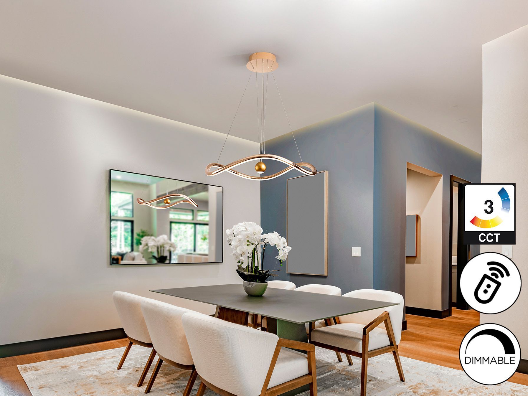 · Эта лампа поставляется с GRAVITY TOGGLES для улучшения крепления к потолку. Этот продукт использует диммер и радиочастотный пульт дистанционного управления для регулировки интенсивности и цветовой температуры. Совместим с приложением TUYA для регулировки света со смартфона или планшета...доступна версия 110 В.