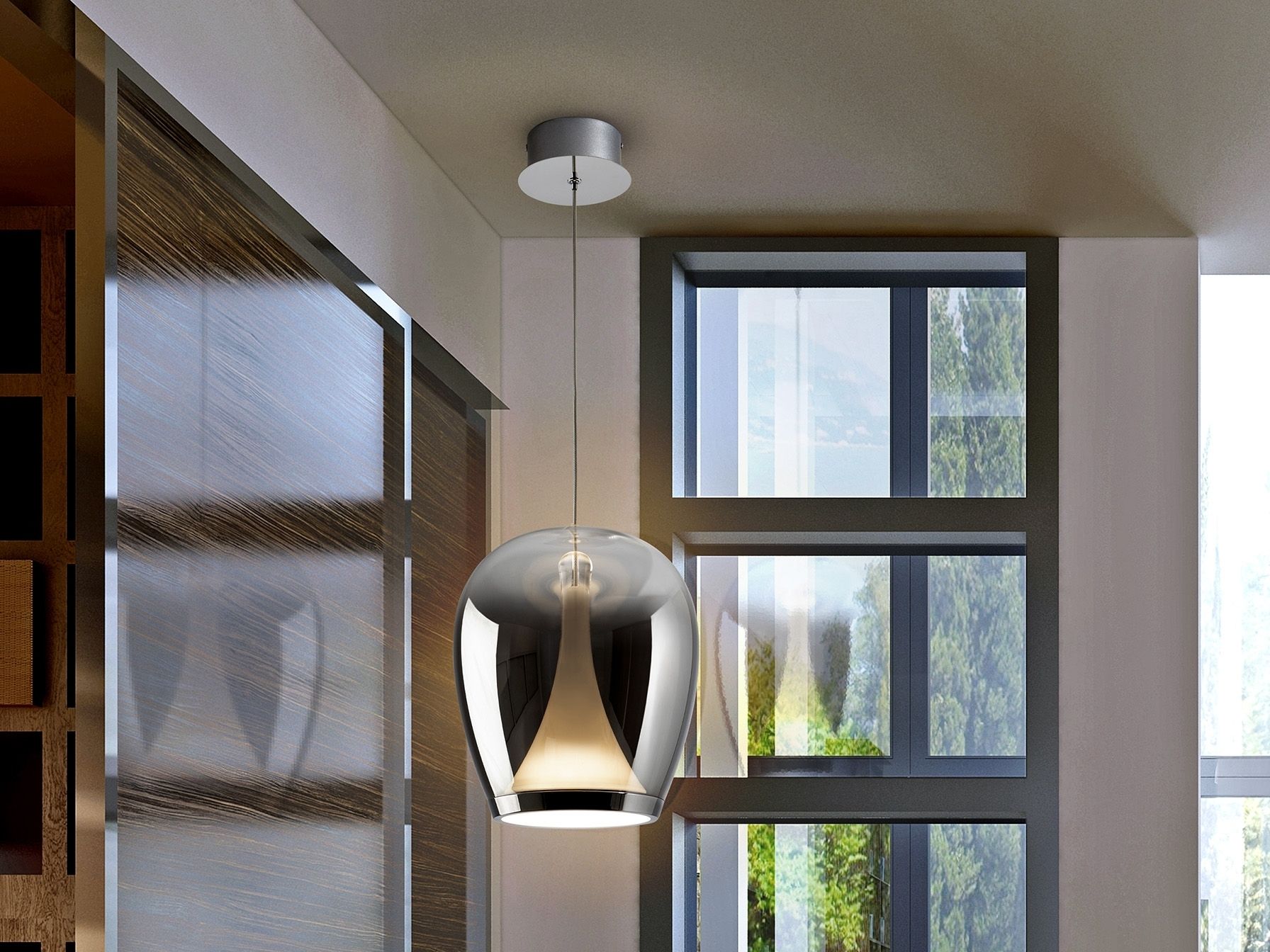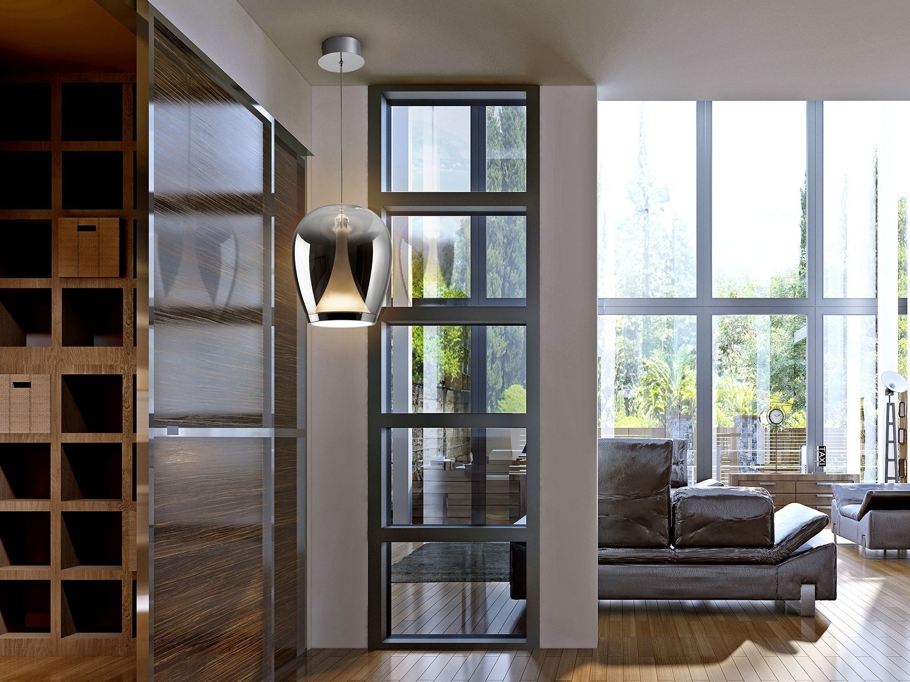 Лампа из хромированного алюминия с абажуром из выдувного стекла с градиентной дымчатой отделкой и опаловым внутренним рассеивателем. Регулируется по высоте. Светодиод 20 Вт, 1200 лм, 3000 К.