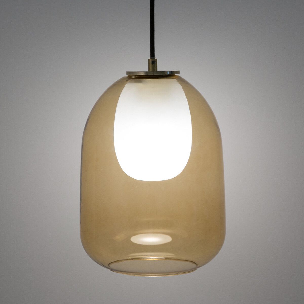 — Светильник из металла с отделкой под латунь, двойной абажур из стекла;