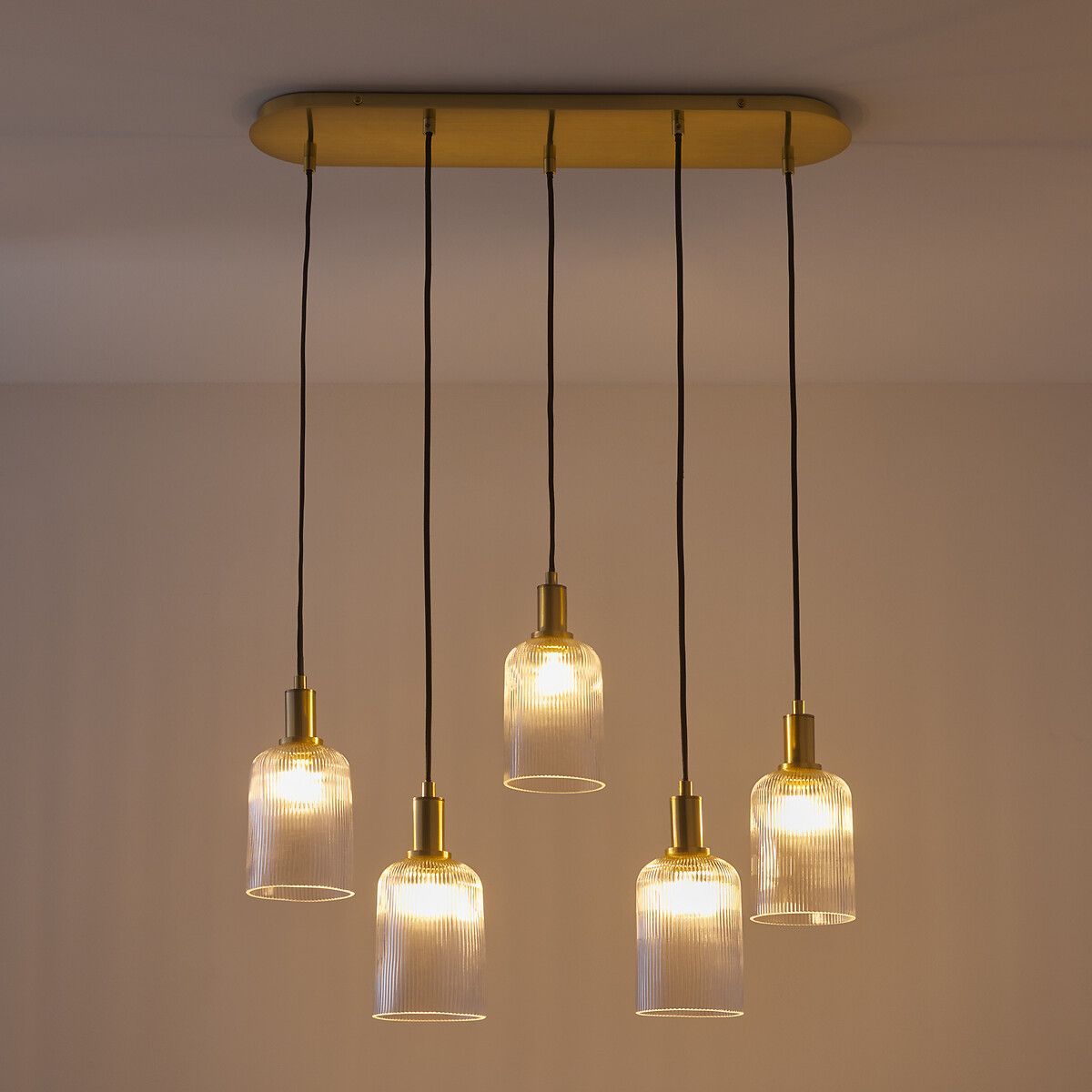— Каркас из металла с отделкой под латунь и абажур из граненого стекла
