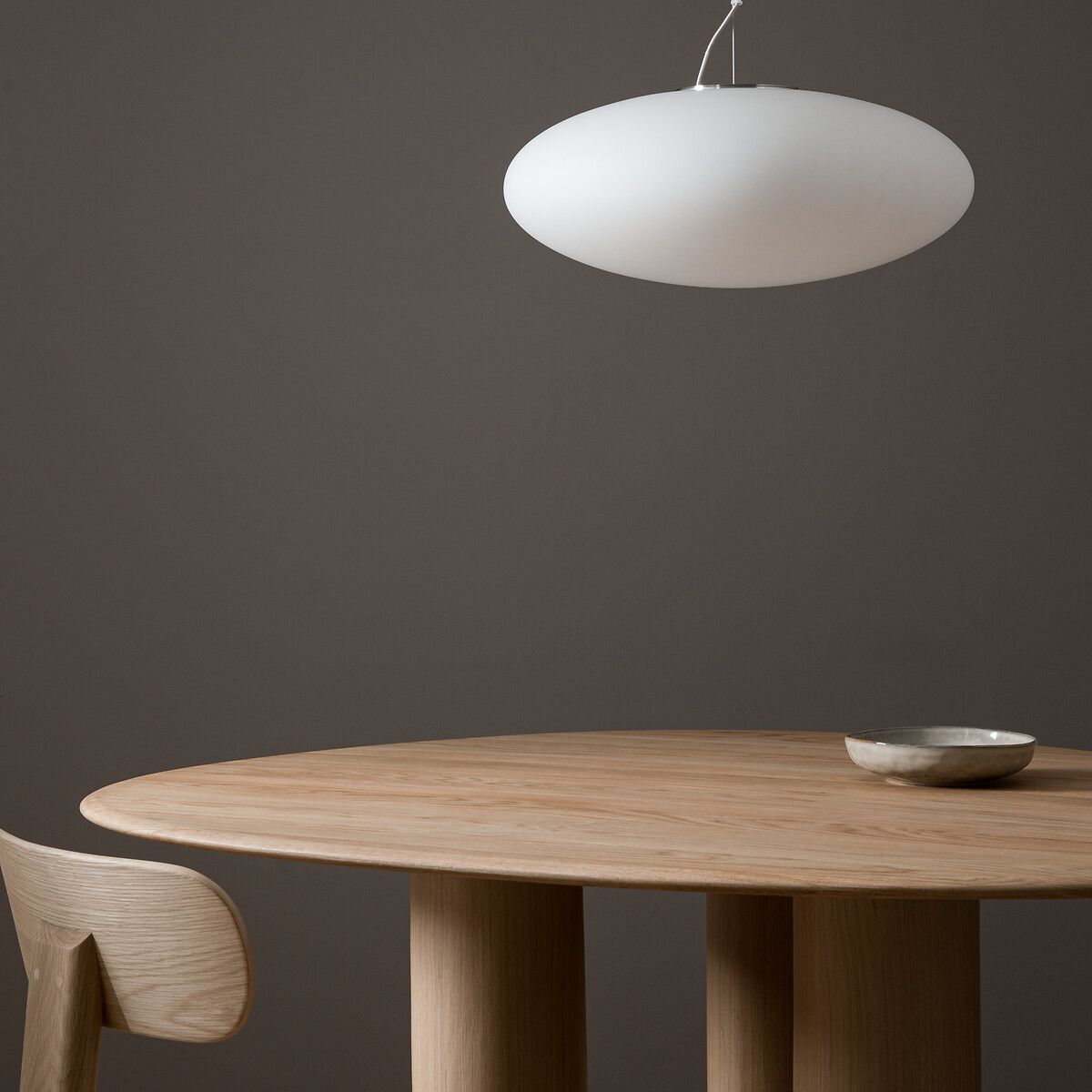 Светильник Raeyes представляет собой вытянутую форму с органичными изгибами и изысканным дизайном. Графичное и поэтичное оформление делает эту модель особенно привлекательной. Шар из белого опалина создаёт мощный, тёплый и успокаивающий свет.