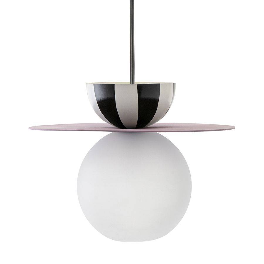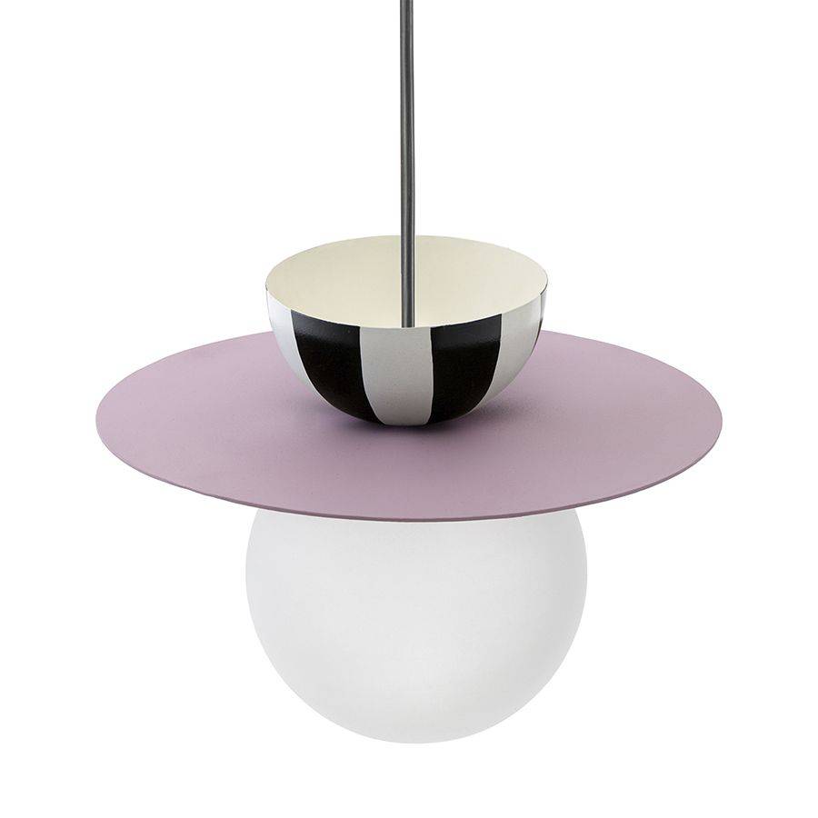Материал: железо, алюминий, стекло. Размеры светильника: 36х36х28 см. Размеры основания: 10х10х2 см. Цвет: черный/белый/лиловый. Тип цоколя: Е27. Степень пылевлагозащиты: IP20. Максимальная мощность ламп: 25 Вт. Напряжение: 220-240 В. Длина подвеса: 50,8-127 см. Площадь освещения: 1,7 кв.м. Лампы в комплекте: нет.