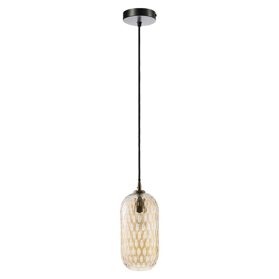 Материалы: стекло, железо. Размеры: 26х26х42 см. Цвет: янтарно-золотой. Длина провода: 1,5 м. Тип цоколя: Е27. Максимальная мощность ламп: 40 Вт. Степень пылевлагозащиты: IP20. Диаметр монтажной пластины: 11 см. Площадь освещения: 2,7 кв.м. Лампы в комплекте: нет.