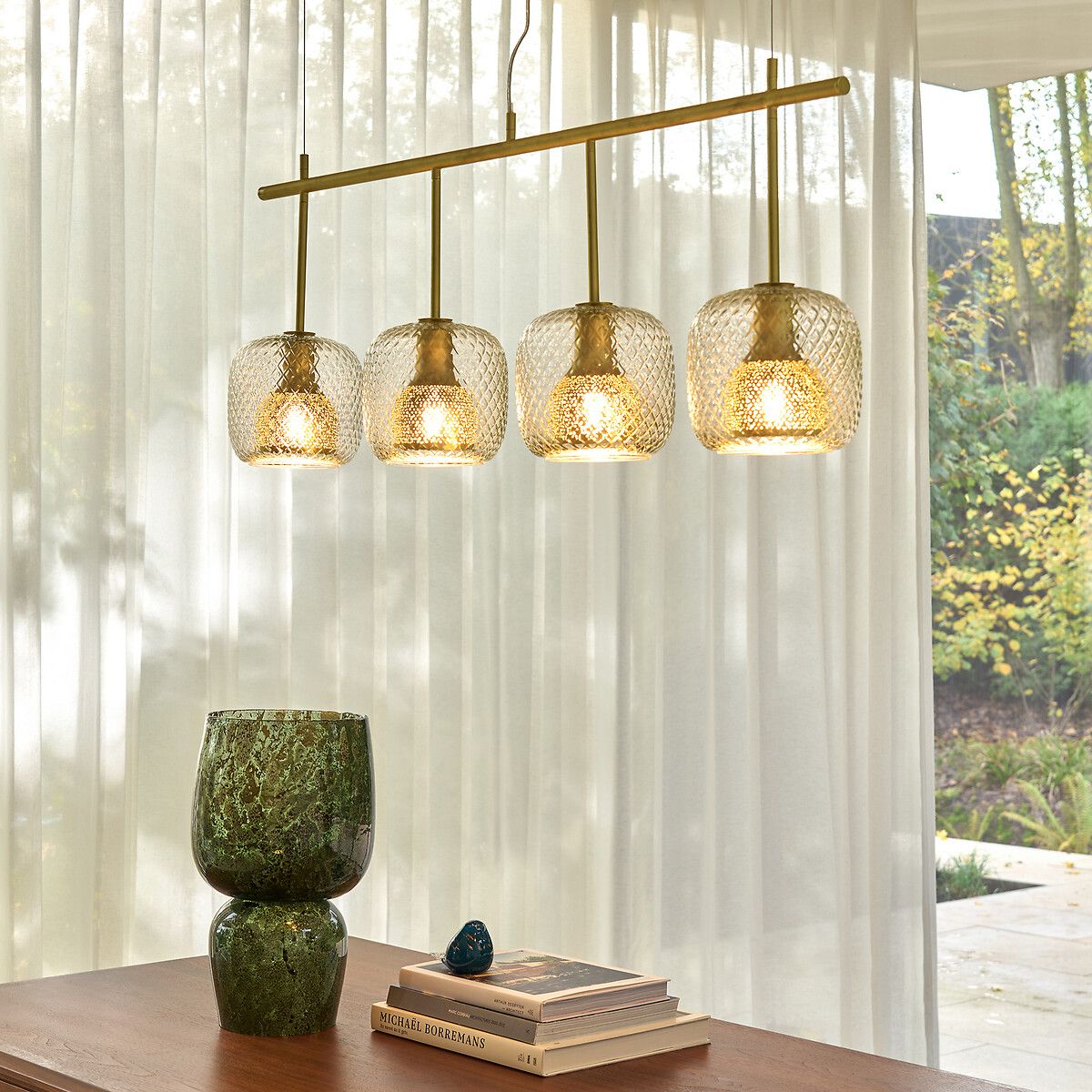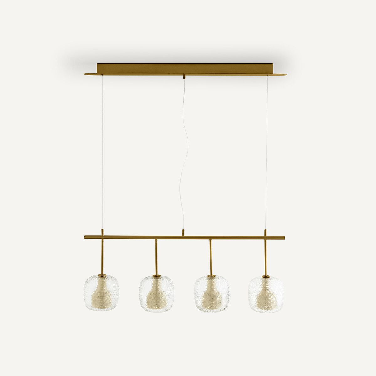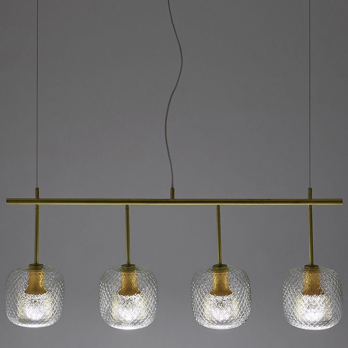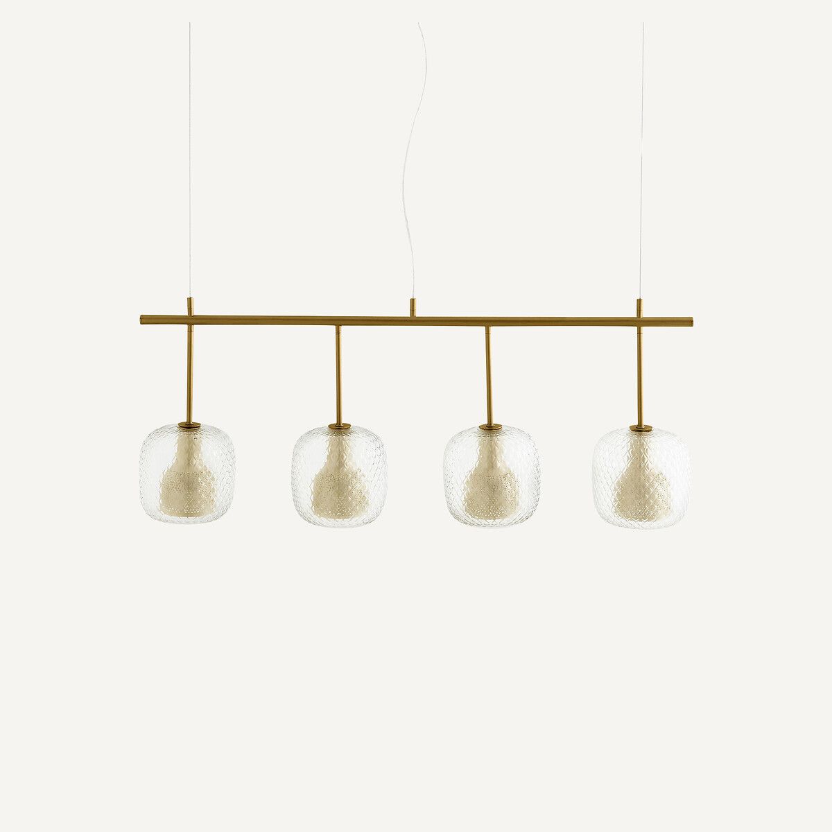 Сочетание шлифованной латуни с резным стеклом в стиле ар-деко, в котором элегантность линий подчеркивает благородные материалы. Диффузор из перфорированного металла и стеклянная сфера распространяют рассеянный мягкий свет. Легендарная люстра, отражающая характер марки.