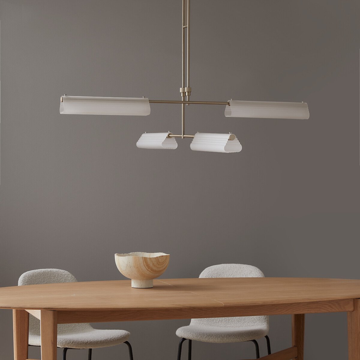 Находящийся полпути между стилем ар-деко и рационализмом, светильник Strozzi изготовлен из треугольной стеклянной трубки с выемками. Его рельеф заставляет свет все время плясать, напоминая колыхающееся пламя.Сочетание стекла с пескоструйной обработкой и металла цвета шампанского создает баланс между функциональностью и эстетикой. Этот светильник со смещенными диффузорами создает приятный и теплый свет. Создан дизайнером Эммануэлем Галлина эксклюзивно для AMPM. Описание • Треугольные диффузоры из стекла с пескоструйной обработкой с выемками • Два регулируемых перекрещенных бра для лучшего распределения света • Каркас из железа цвета шампанского • Совместим с регулятором мощности • Встроенные светодиоды 12 ВРазмеры • Высота: 85 см • Диаметр: 129 см • Диффузор: Д40 x В8,5 x Г8,5 смРазмеры и вес упаковки • Одна упаковка • Д134 x В86 x Г17 см, 6 кг