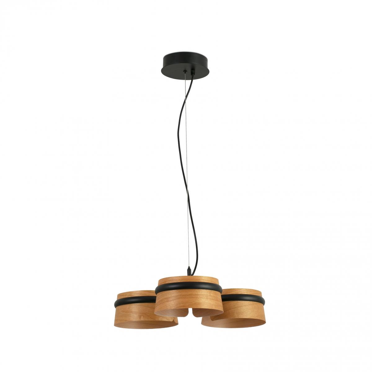LOOP LED - это дизайнерский набор, созданный Estudi Ribaudí. Классический гарнитур, но с современным и теплым оттенком благодаря деревянному абажуру. Подвеска стильная и вписывается в самые разные помещения благодаря материалам, матовому черному металлу и дереву.