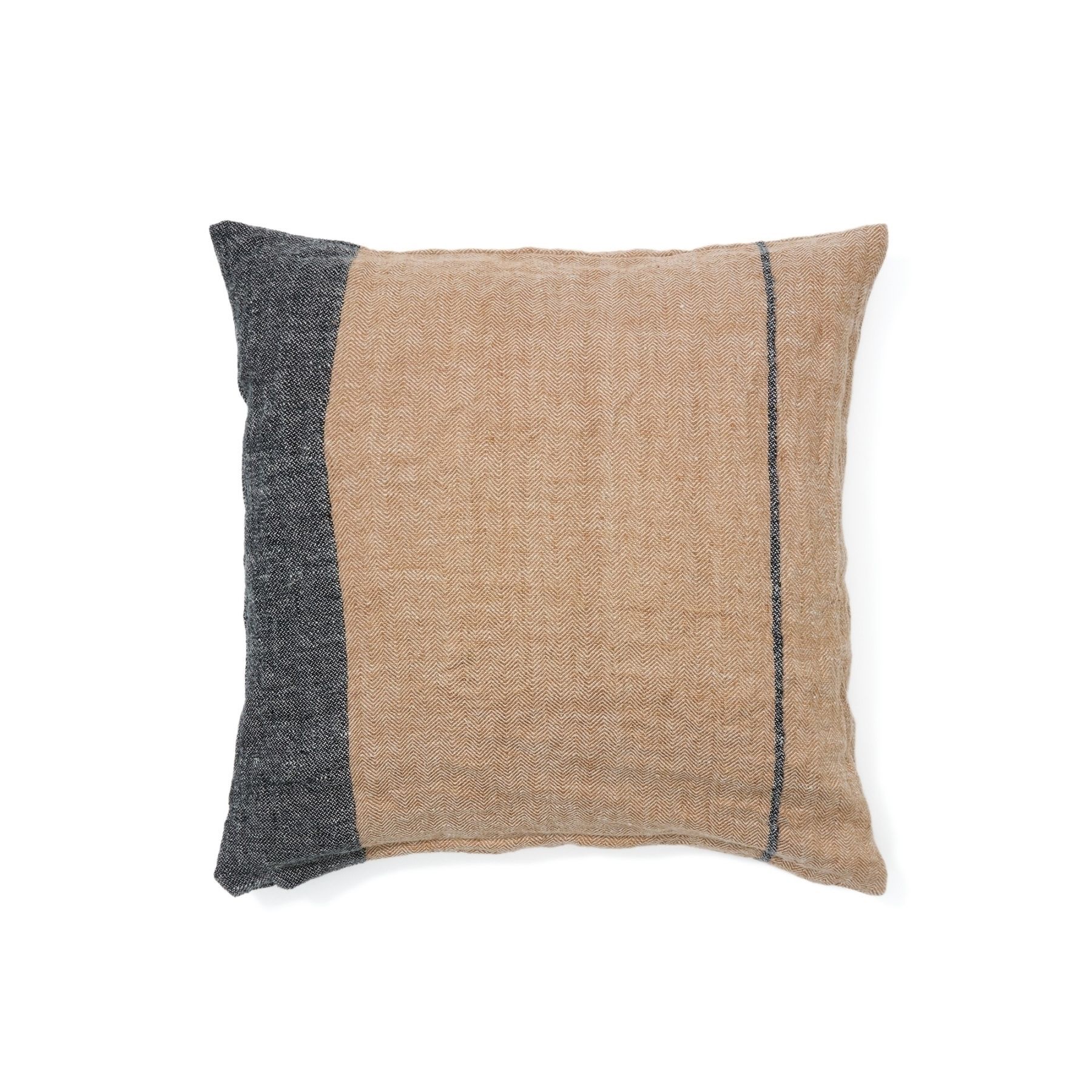 Чехол от подушки сшит из натурального льна, благодаря чему он экологичен, не вызывает аллергии, не имеет ворса. Цвет изделия серо-терракотовый.