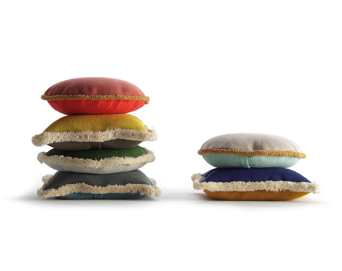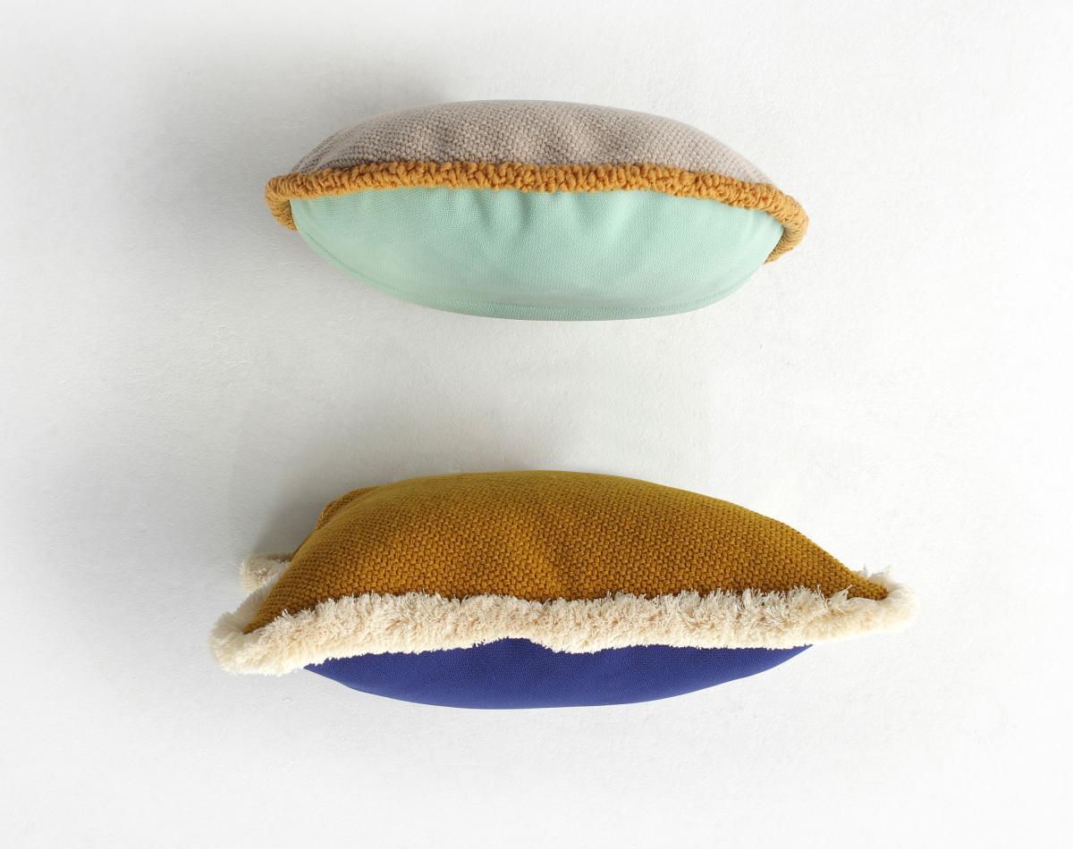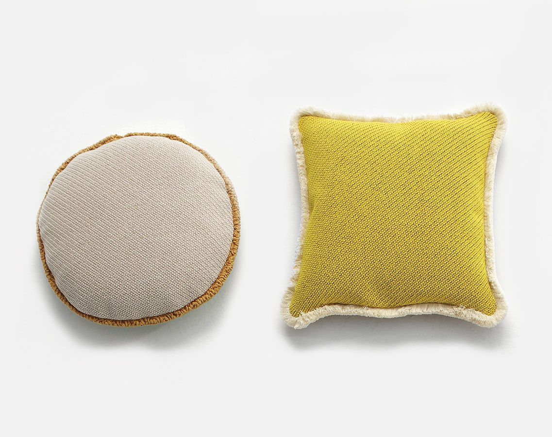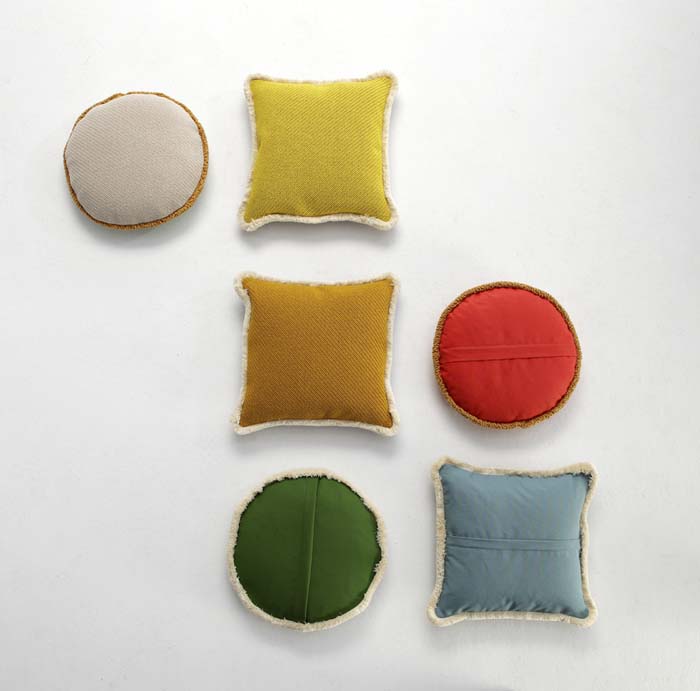 Классическая отделка, которая украшает края изделия, продолжая тему контрастов, на этот раз на фоне самих авангардных узоров. Доступна подушка в следующих цветовых сочетаниях: кремово-яблочный, желтый, снежно-травяной, лимонно-земельный, хаки-фиолетовый, бирюзовый, голубой, коралловый или жемчужный.