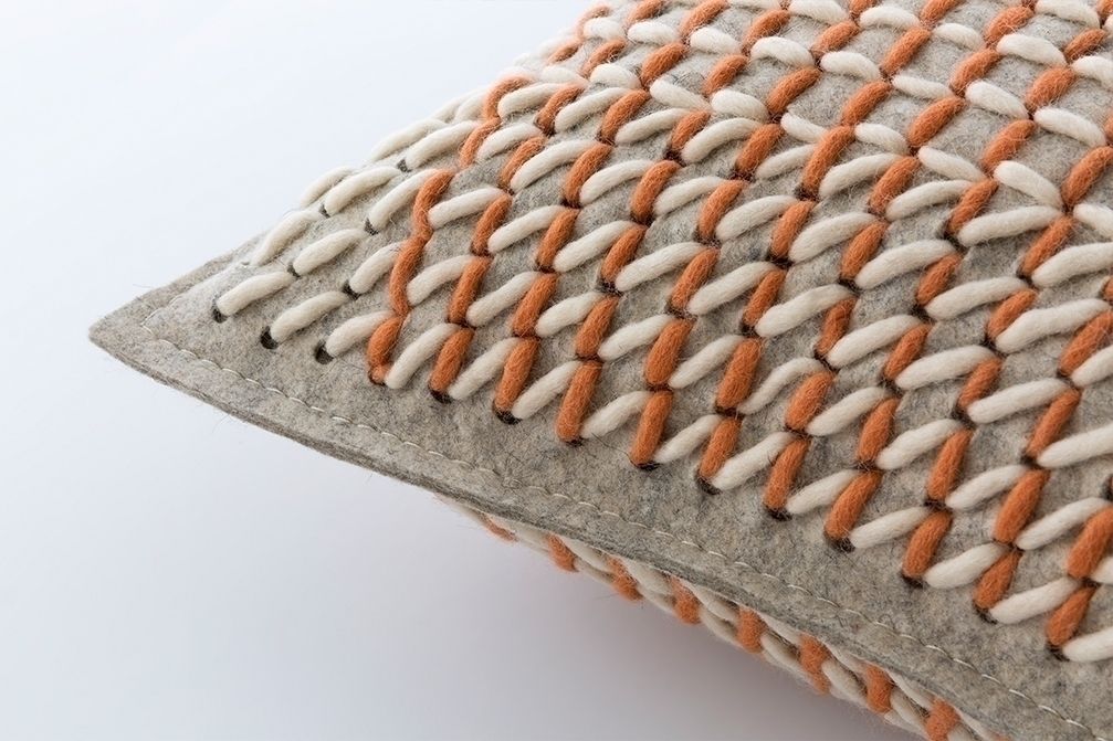 Подушка, выполненная из 100% шерсти с помощью вышивки крестиком на основе из перфорированного войлока.