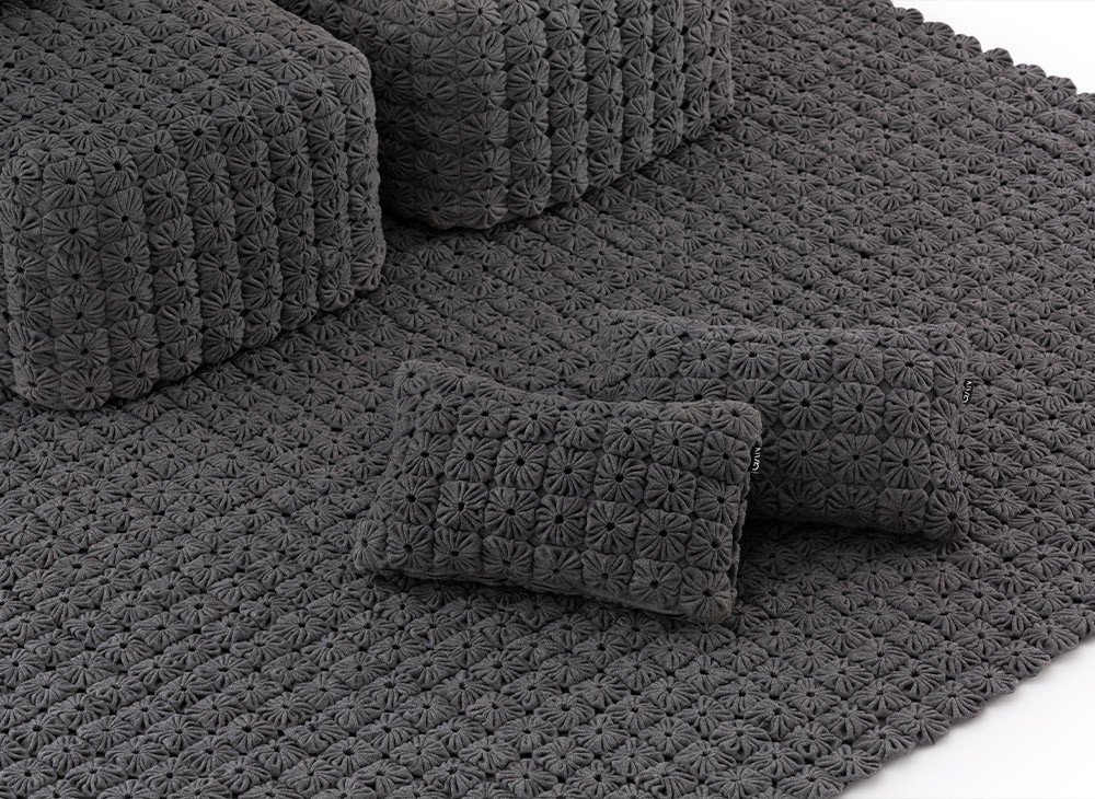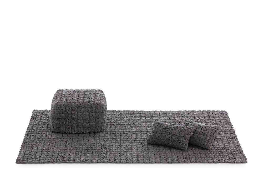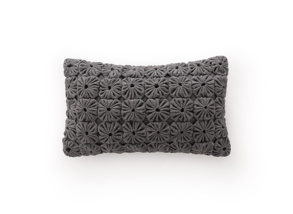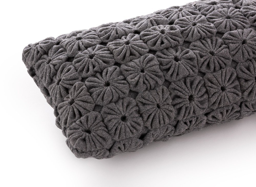 Подушка антрацитового цвета из коллекции Momos, вдохновленная традиционными текстильными ремеслами северной Бразилии. Разработанная Хосе А. Гандиа-Бласко Каналесом, она имеет уникальный трехмерный съемный чехол, выполненный с использованием нашей техники ручной вышивки шерстью антрацитово-серого цвета. В сочетании с ковром и пуфом она создает непринужденную атмосферу.
