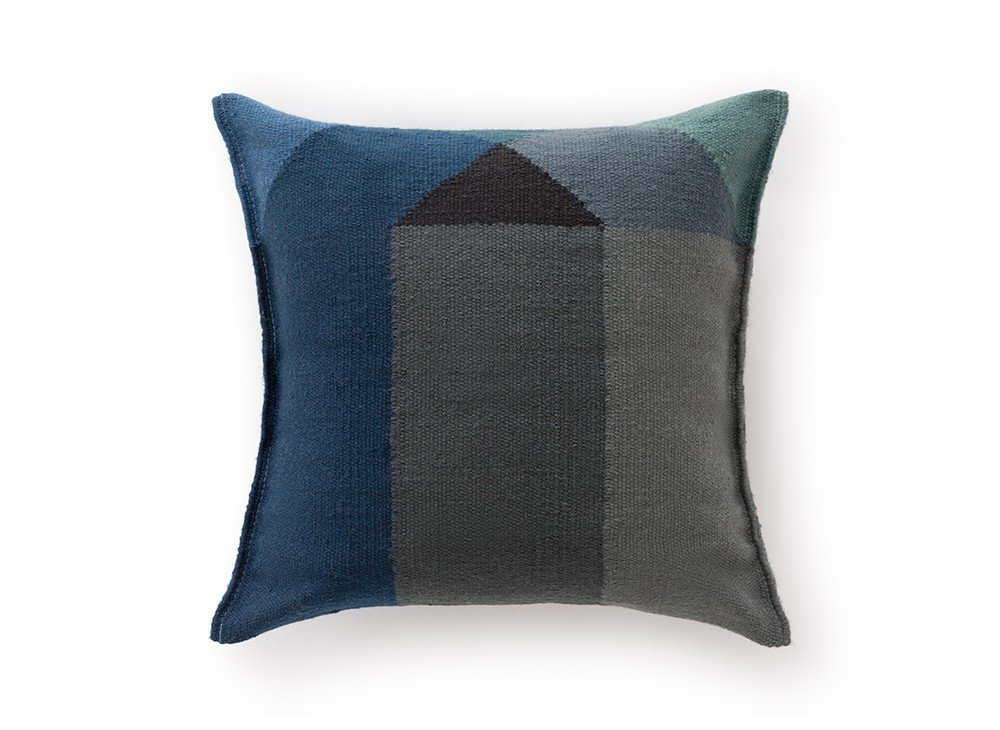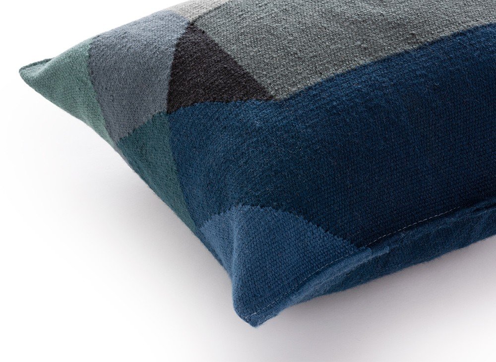 Квадратная подушка Diamond Blue-Green от Шарлотты Ланселот украшена геометрическим узором в оттенках синего, зеленого и серого, вдохновленным гранями бриллианта. Она изготовлена в технике килим из переработанных ПЭТ-волокон, что делает ее подходящей как для использования в помещении, так и на открытом воздухе.