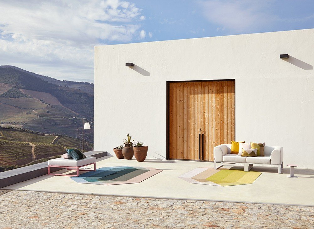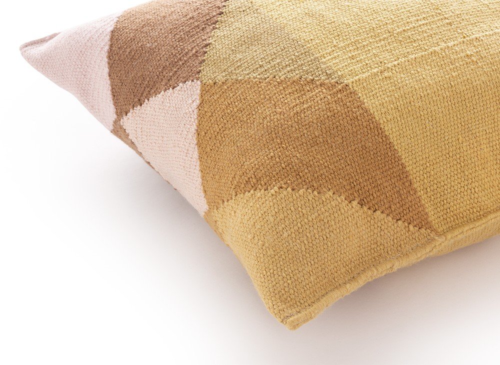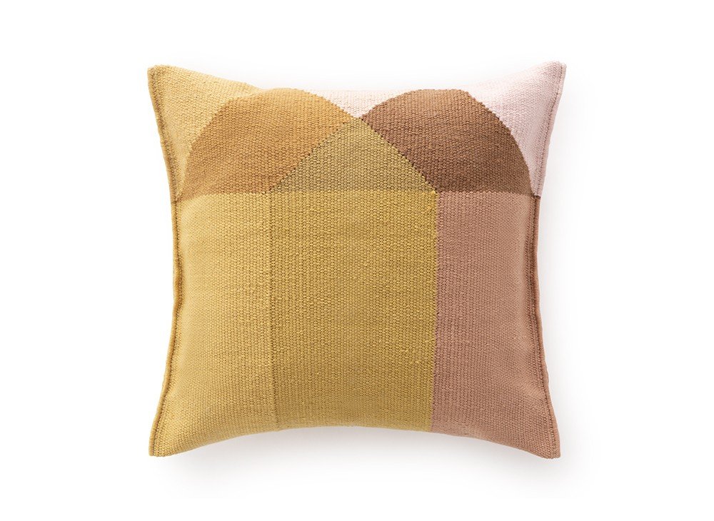 Квадратная подушка розово-желтого цвета из нашей коллекции Diamond изготовлена в технике килим из переработанных ПЭТ-волокон, что делает ее подходящей как для использования в помещении, так и на открытом воздухе. Ее дизайн, вдохновленный гранями бриллианта, разработан Шарлоттой Ланселот.