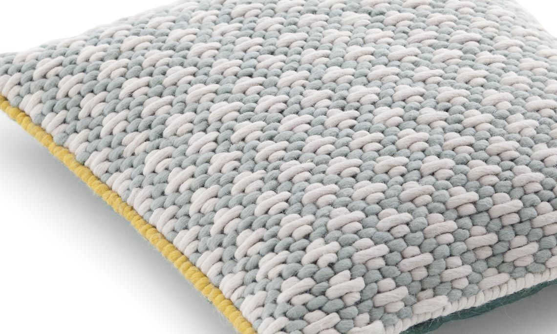 Если вам приглянулись вещи из коллекции Silai, рекомендуем дополнить ансамбль стильными декоративными подушками. Квадратная зелёная подушка Celadon замечательно впишется в пространство: мягкая мебель с ней становится ещё мягче и уютнее. Подушка связана вручную из 100% шерстяной пряжи. В роли “канвы” выступила база из поливинилхлорида, а в качестве наполнителя производитель выбрал 100% полиэстер. Все материалы абсолютно безопасны. С таким составом подушке не страшны годы эксплуатации. Размер подушки: 50 х 50 сантиметров. Также вы можете купить подушку Celadon GAN в сером, синем или жёлтом цвете.