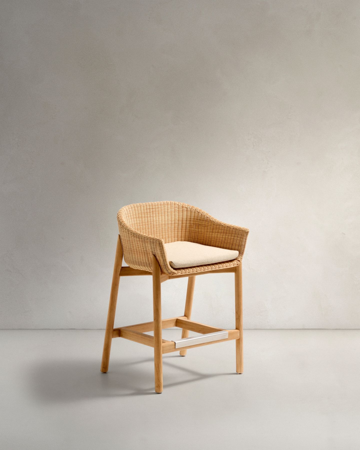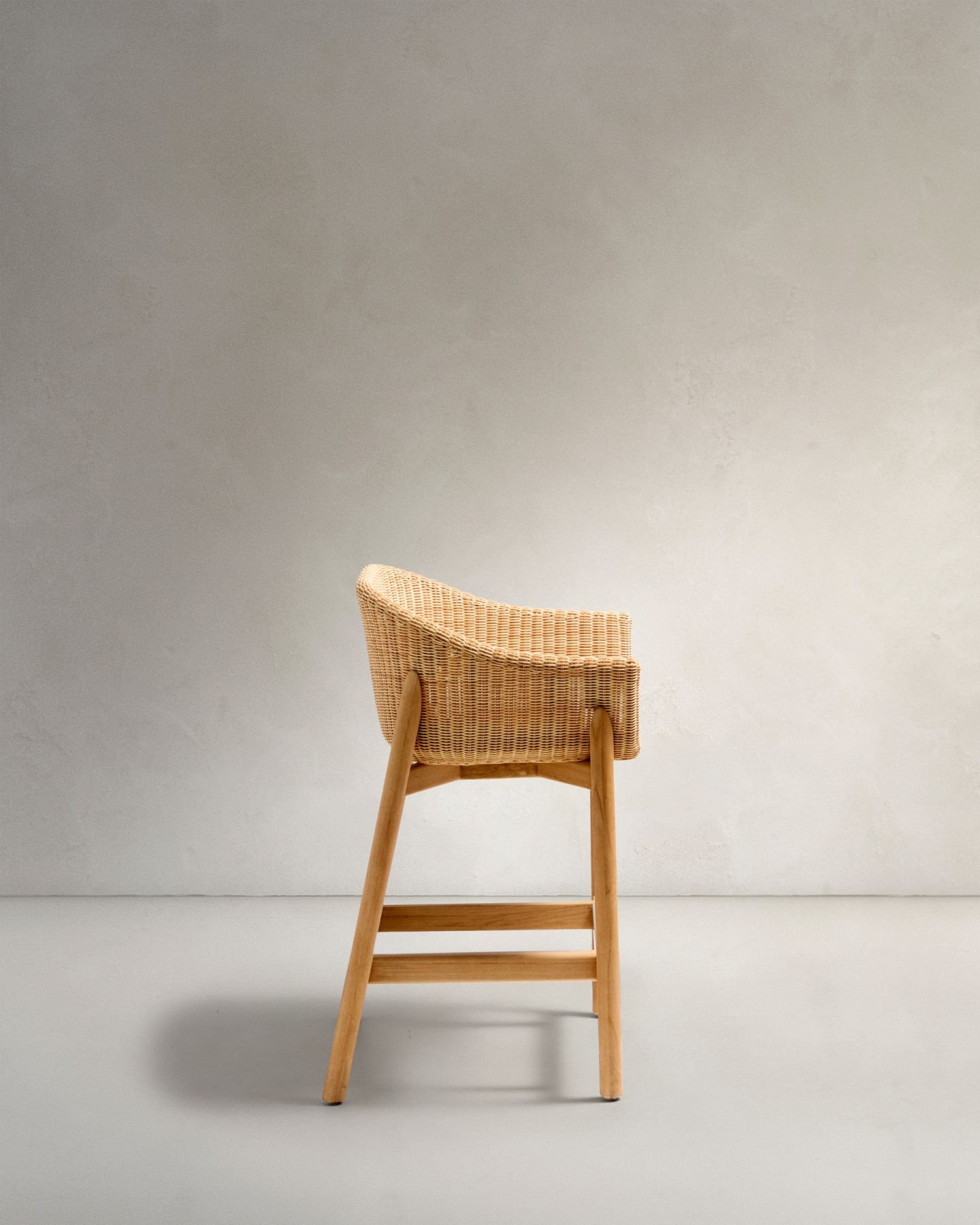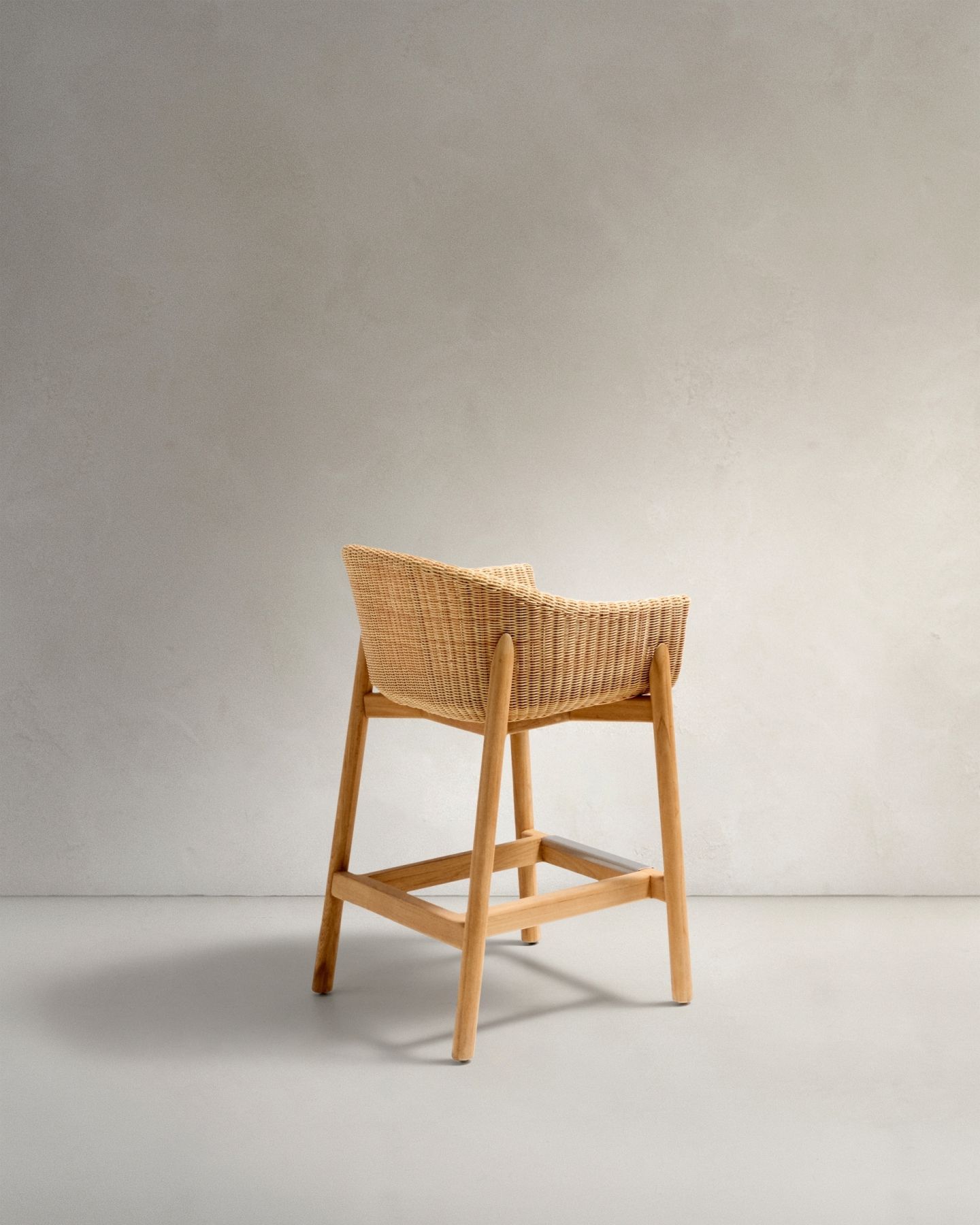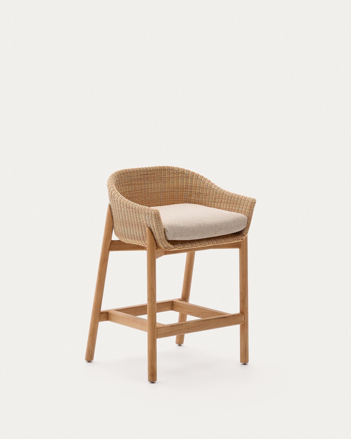 - Полубарный стул Galea из тикового дерева и синтетического ротанга, 65 см
