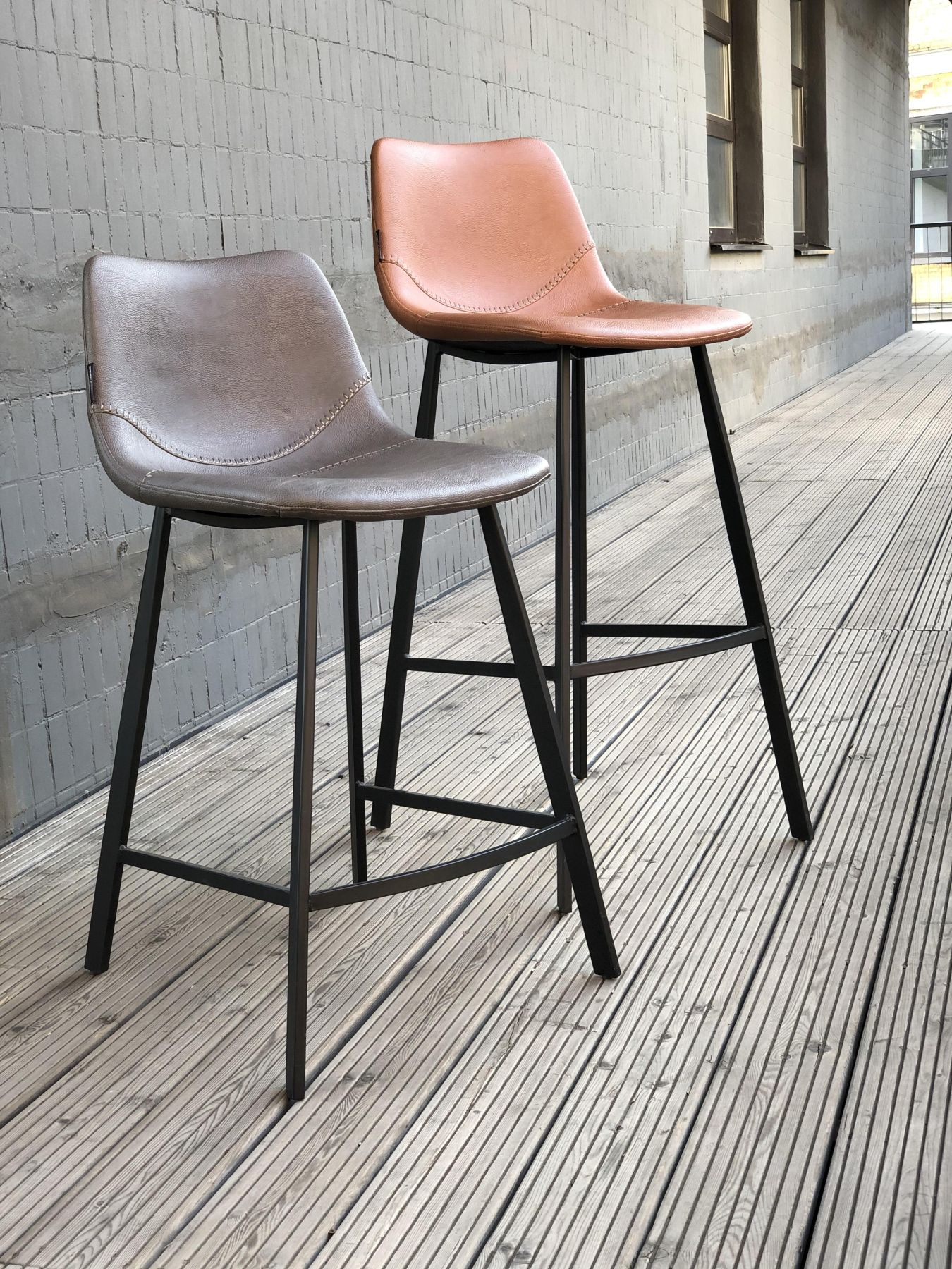 Форма сидения и спинки полубарного стула Бормио напоминает колыбель, в которой можно уютно расположиться после рабочего дня и насладиться долгим общением с друзьями. Высокие ножки, усиленные перекладиной, своей угловатостью эффектно контрастируют с плавностью линий верхней части изделия, обтянутой коричневой экокожей двух оттенков (светлого и темного). Для большей выразительности они специально разграничены декоративным швом. Латунь, из которой выполнено основание конструкции, защищает стул от ржавчины и со временем не меняет свой привлекательный цвет.