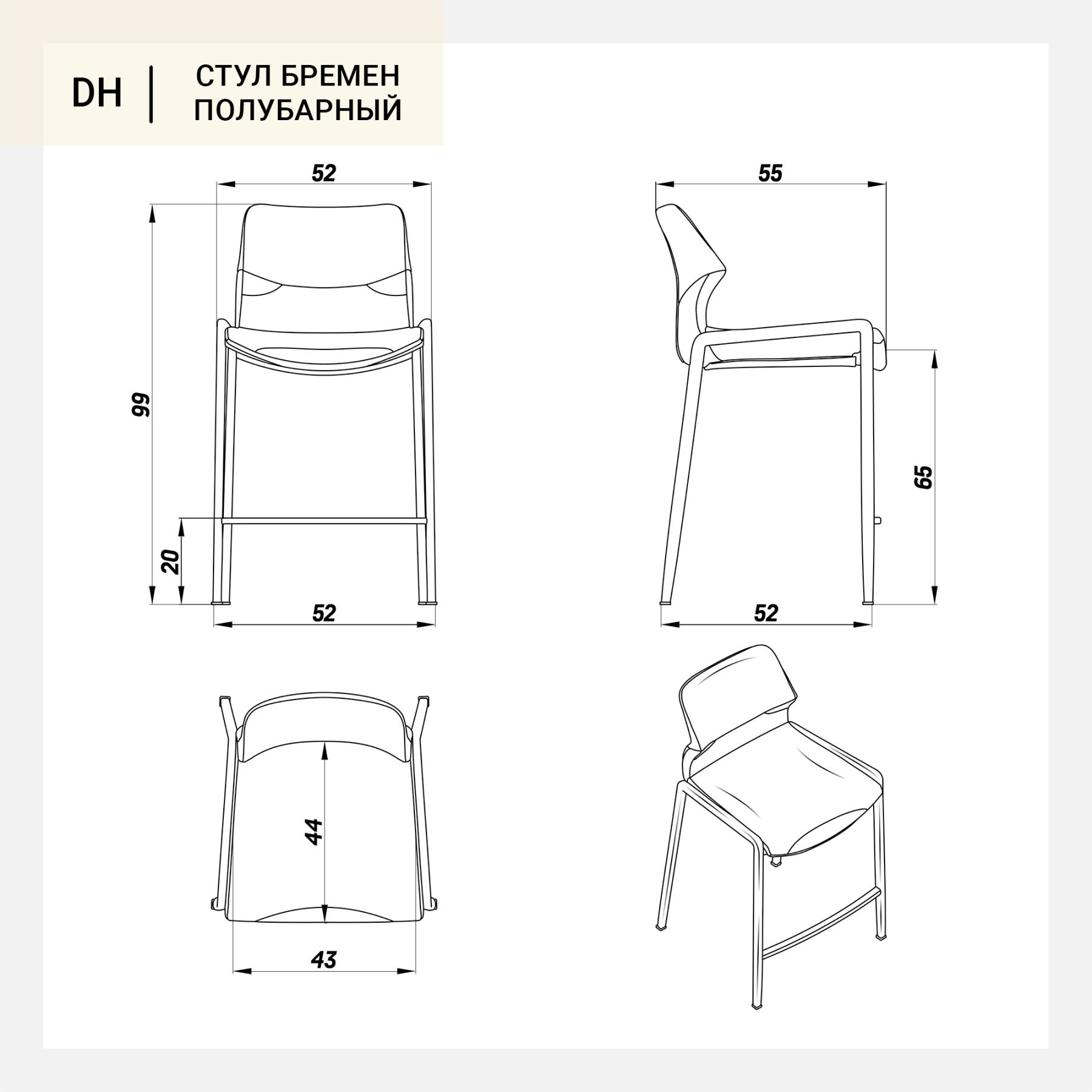 Комфортный и элегантный стул Бремен полубарный из экокожи отлично подходит для столешниц высотой от 90 до 100 см. Высота сиденья стула - 65 см. Сиденье стула Бремен полубарного обито восхитительной экокожей, которая не только привлекает взгляд своей элегантностью, но и порадует практичностью. Акцент в дизайне полубарного стула Бремен - это элегантная прострочка. Ножки из металла добавляют стулу современный характер, гарантируют прочность и стабильность, позволяя вам чувствовать себя уверенно и комфортно. Стоит отметить, что стул Бремен полубарный поставляется в разобранном виде.