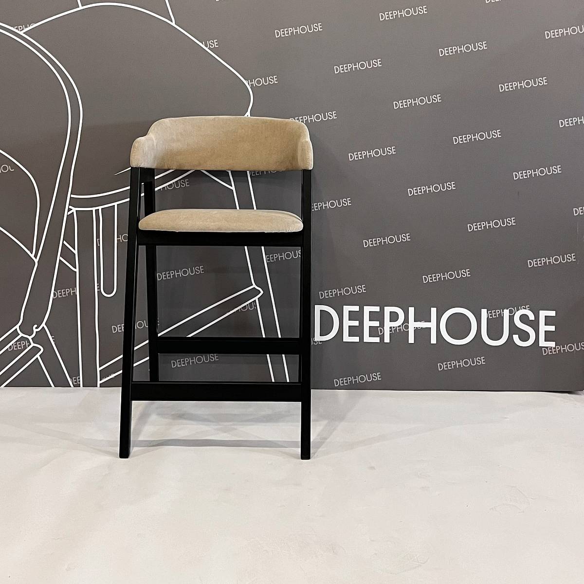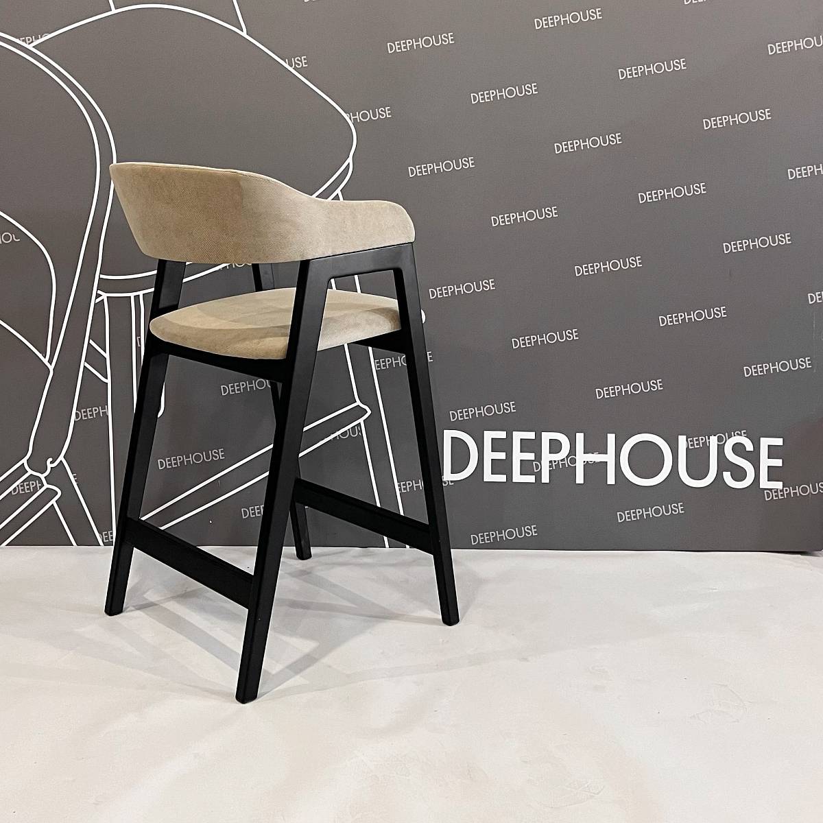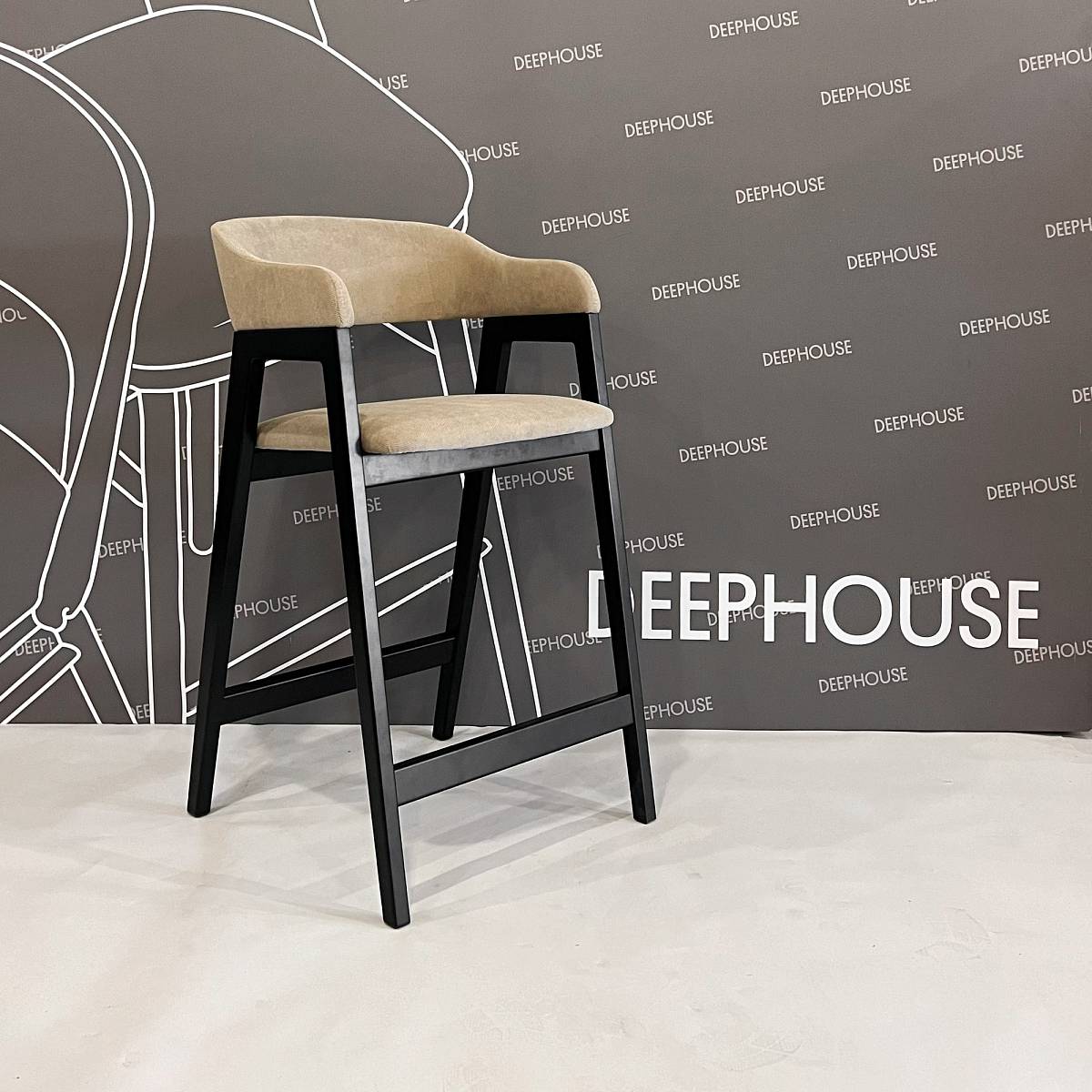 - Стул Челси полубарный бежевая ткань (Ophelia) массив бука (черный) высота подлокотников 83,5 см