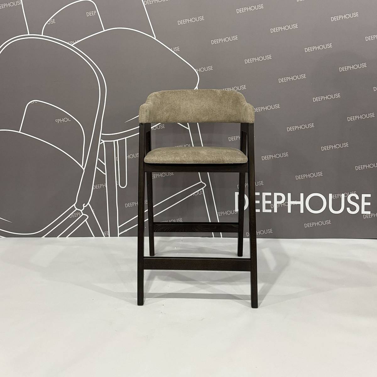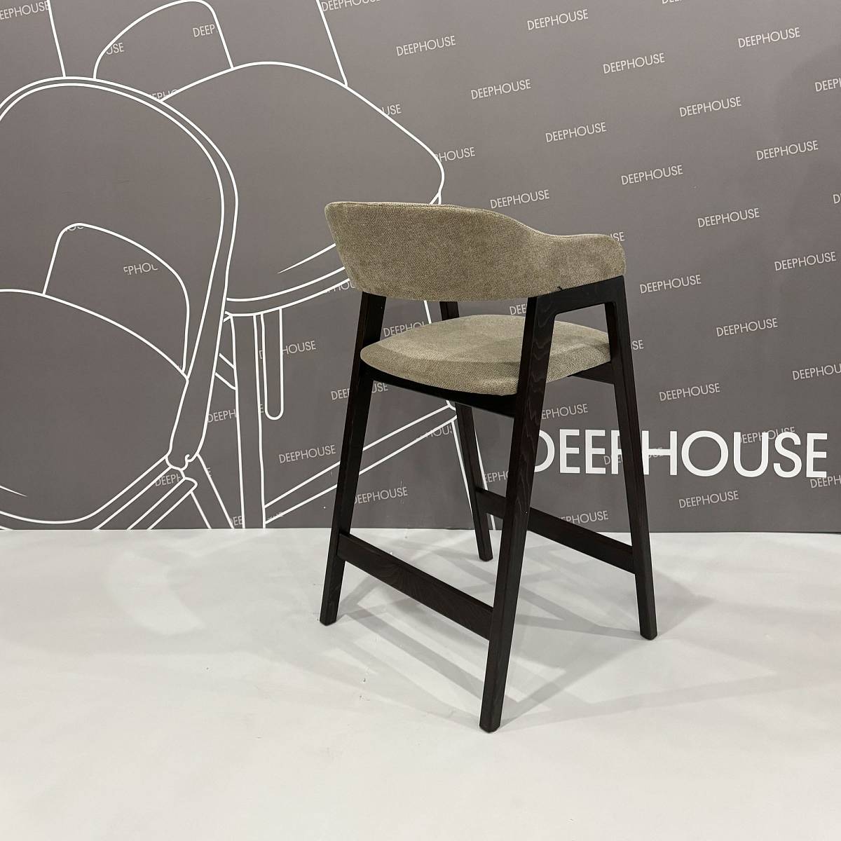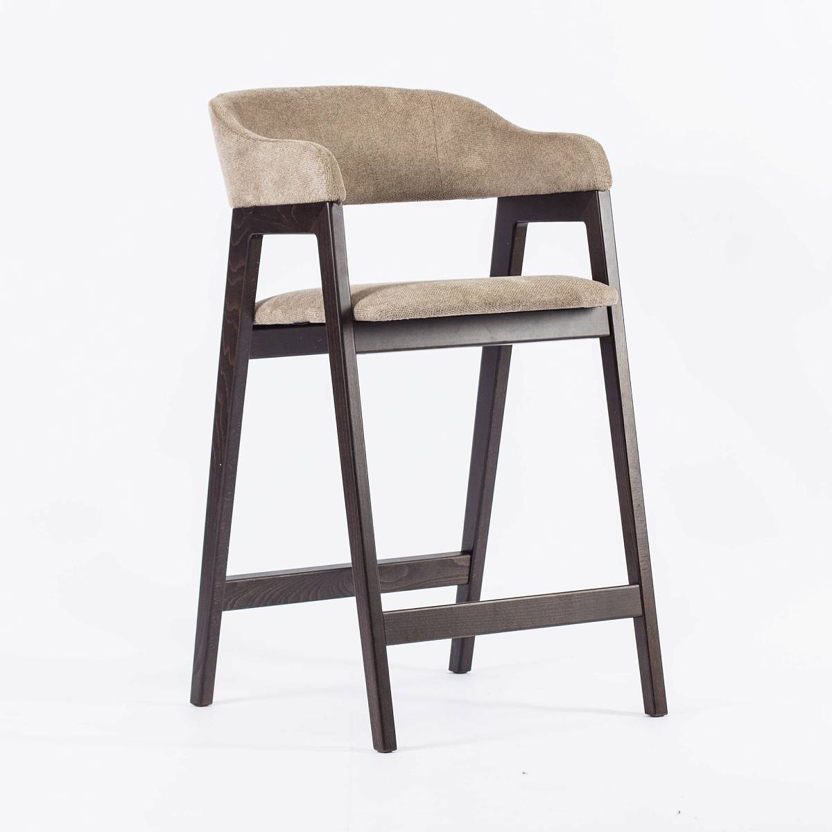 - Стул Челси полубарный бежево-коричневая ткань массив бука (темный орех) высота подлокотников 83,5 см