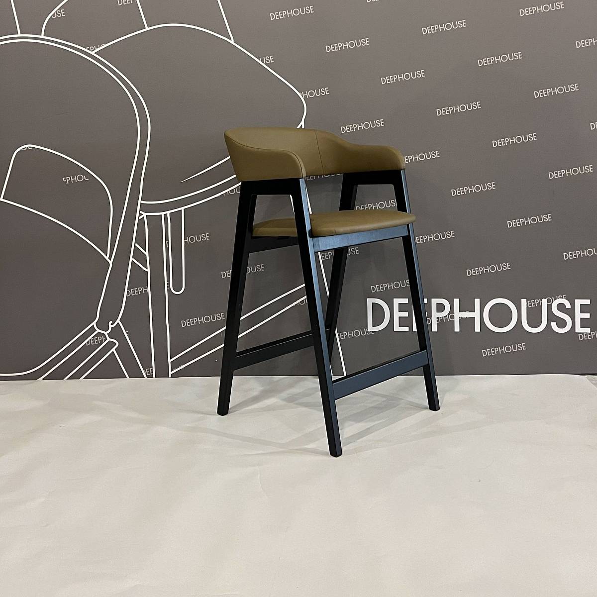 - Стул Челси полубарный коричневая экокожа массив бука (черный) высота подлокотников 83,5 см