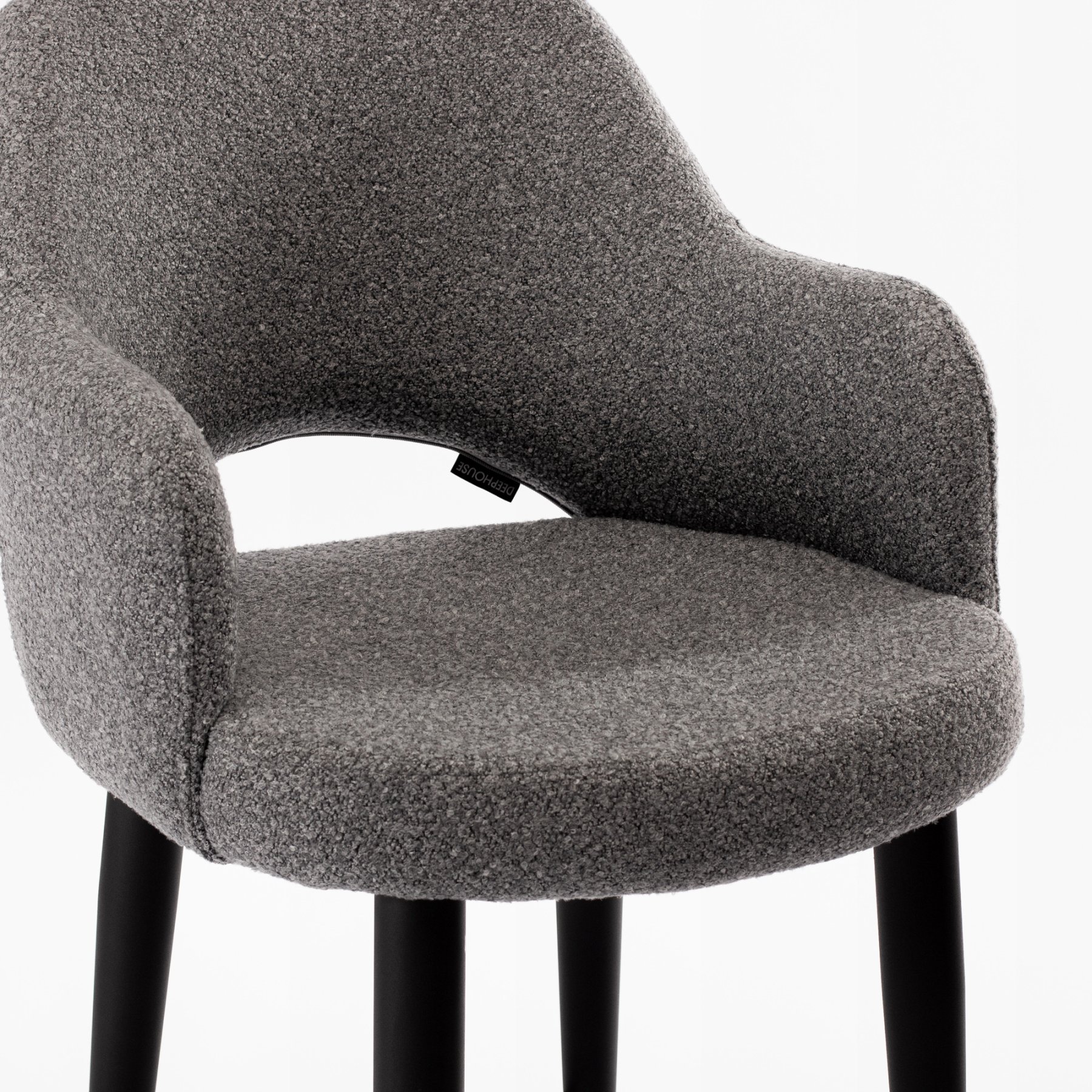 - Стул полубарный Мартин серая ткань букле ножки черные