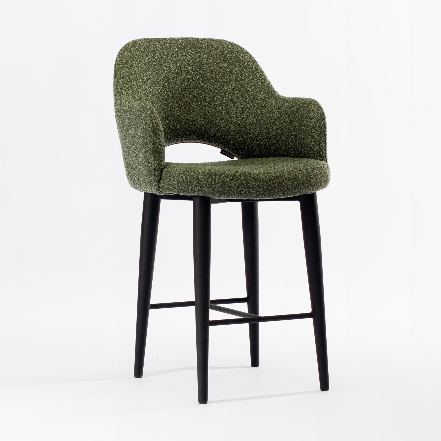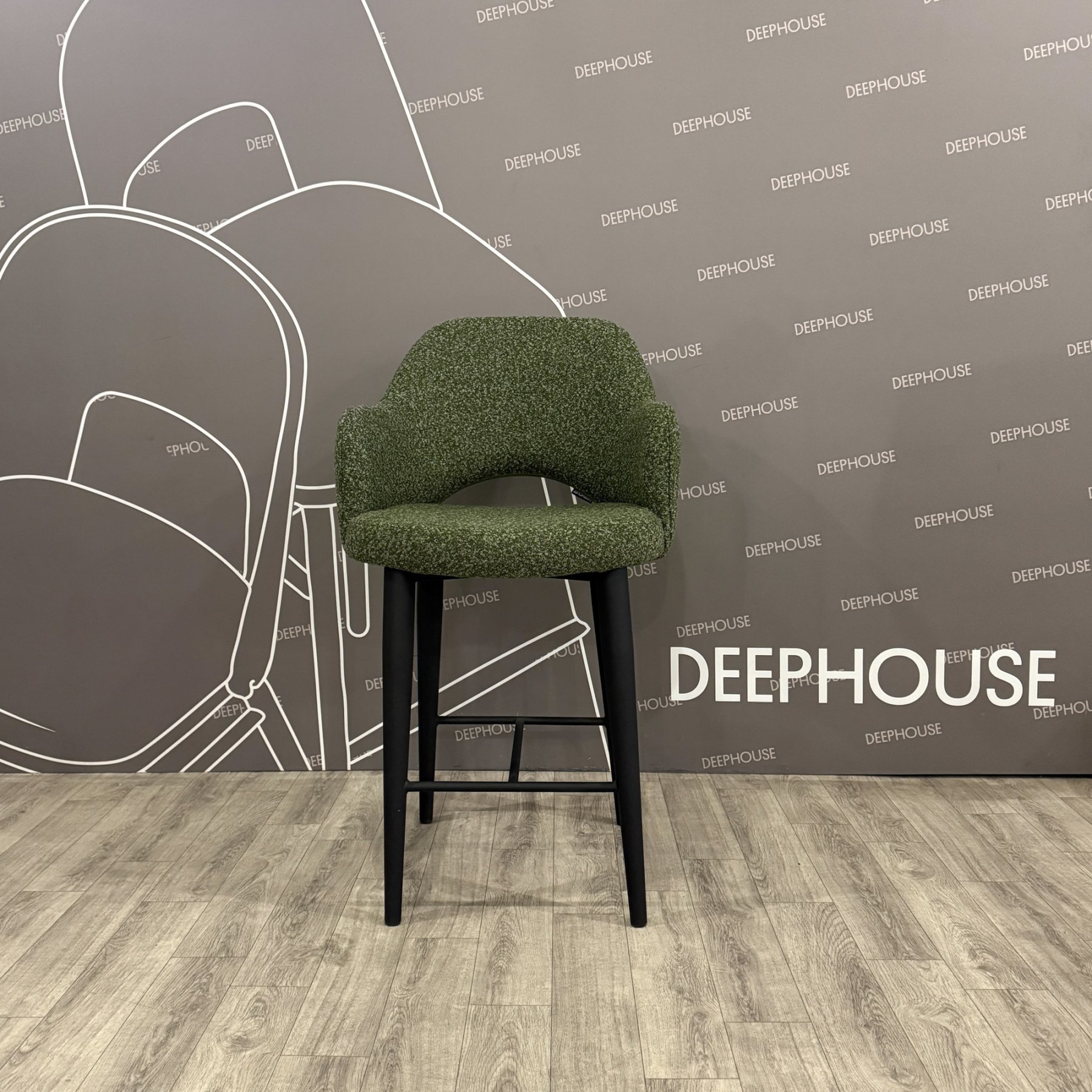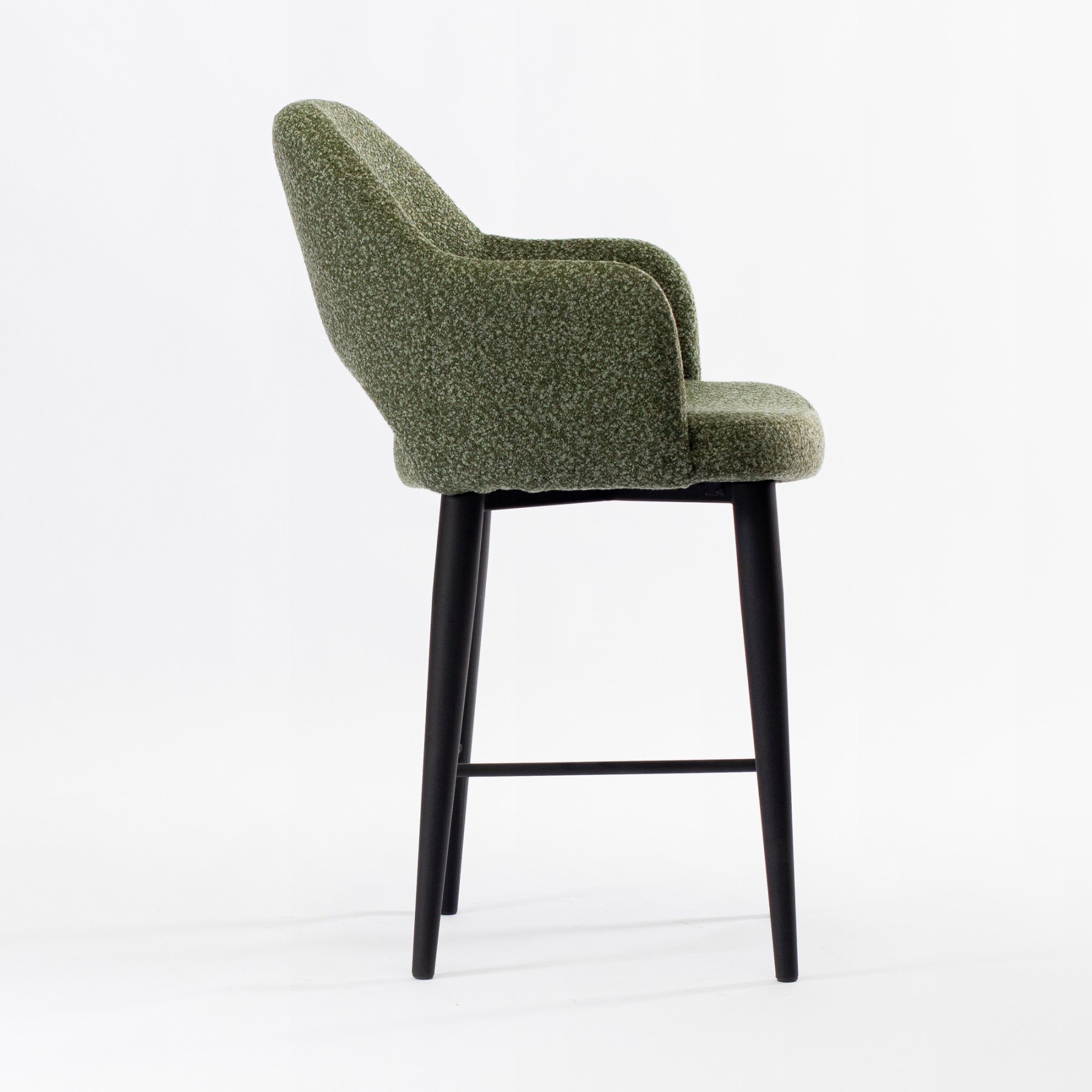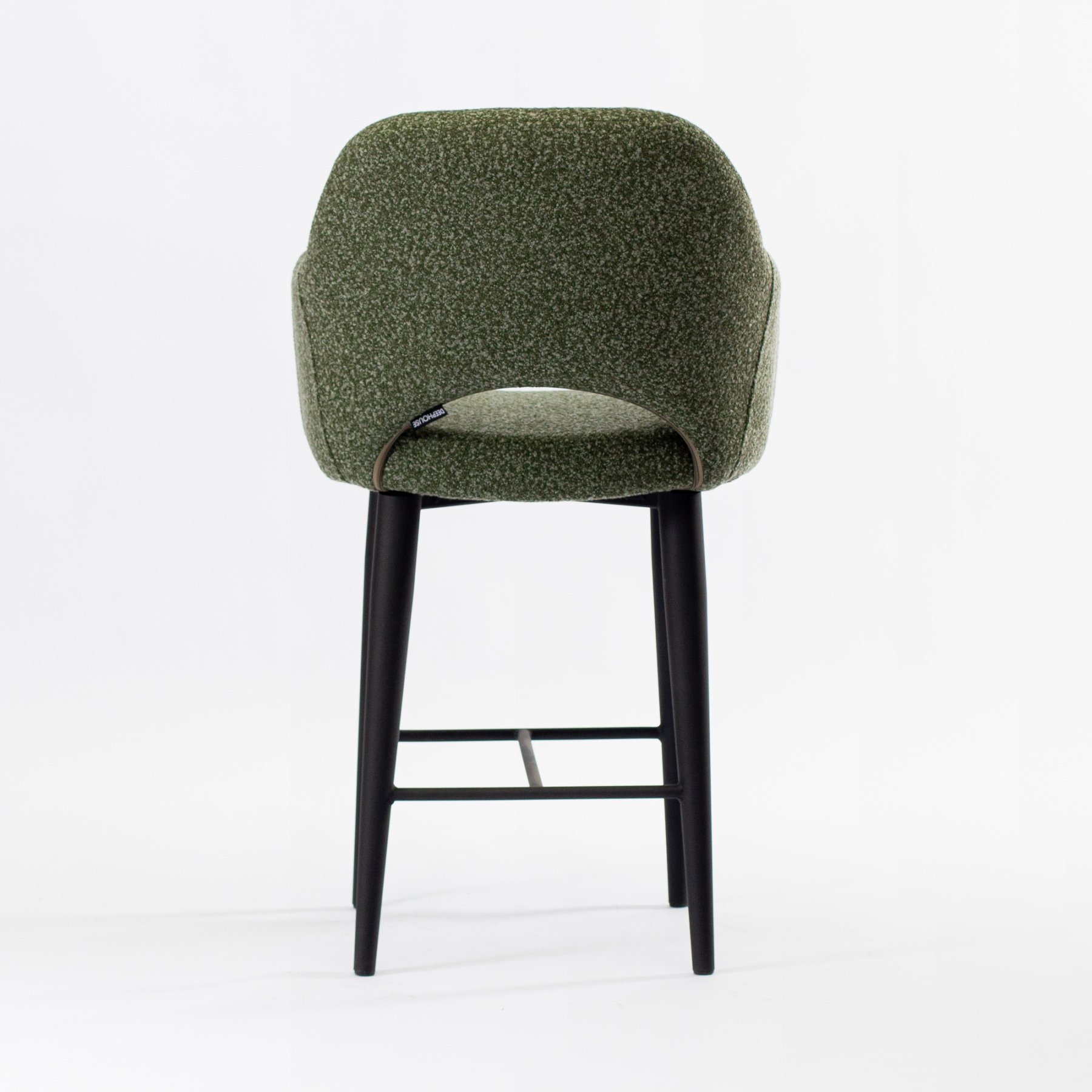 - Стул полубарный Мартин темно-зеленая ткань букле ножки черные