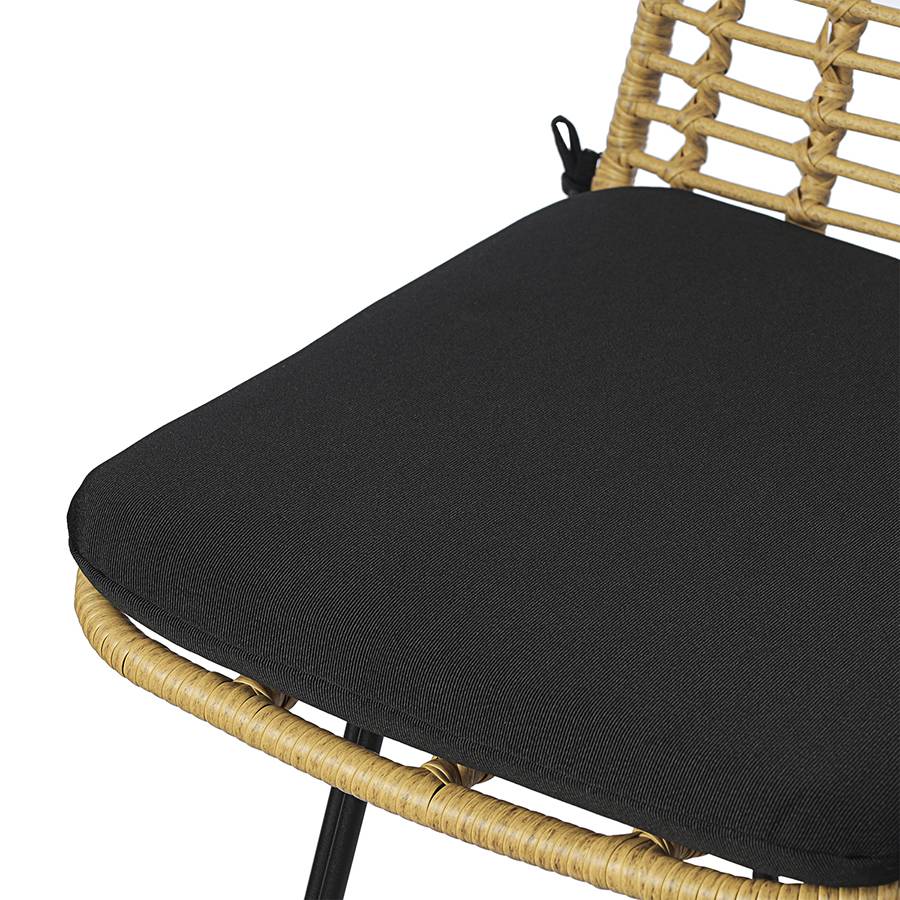 Материал: искусственный ротанг, сталь, полиэстер, пенополиуретан. Размеры: 41х37х72 см. Высота сиденья: 71 см. Ширина сиденья: 41 см. Глубина сиденья: 39 см. Высота спинки: 28 см. Ширина спинки: 34 см. Высота подножки: 23,5 см. Высота подушки: 4 см.
