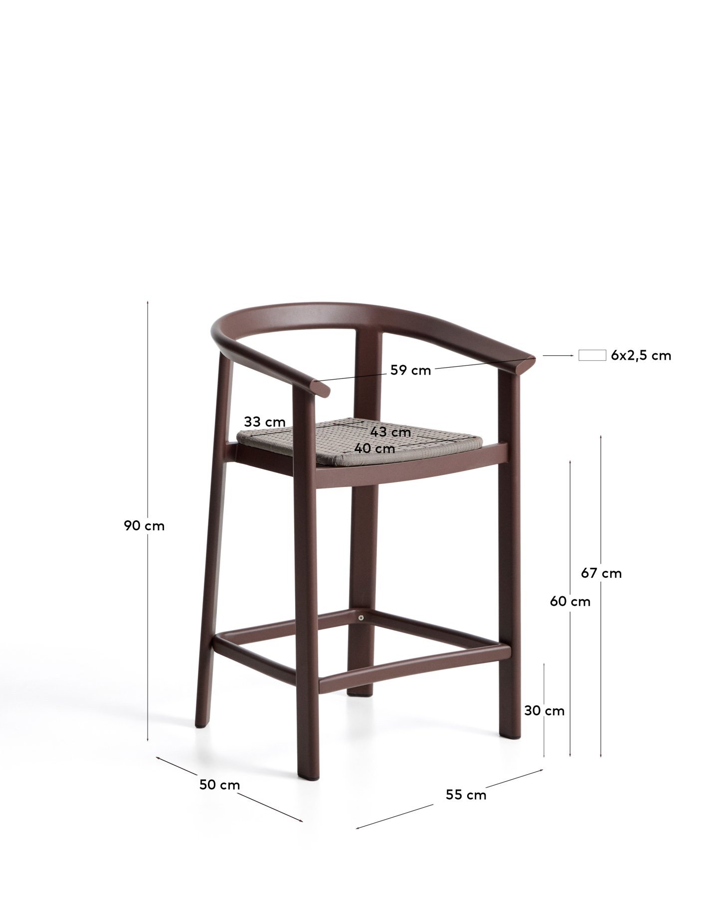 - Уличный полубарный стул Erice из алюминия и веревки коричневого цвета, 75 см
