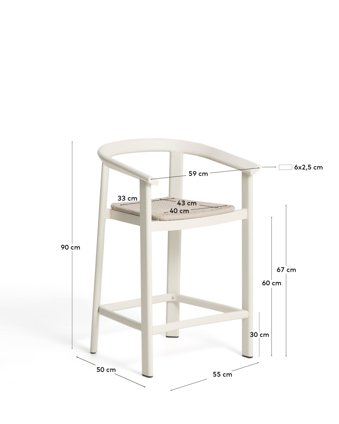 - Уличный полубарный стул Erice из алюминия и веревки цвета экрю, 75 см