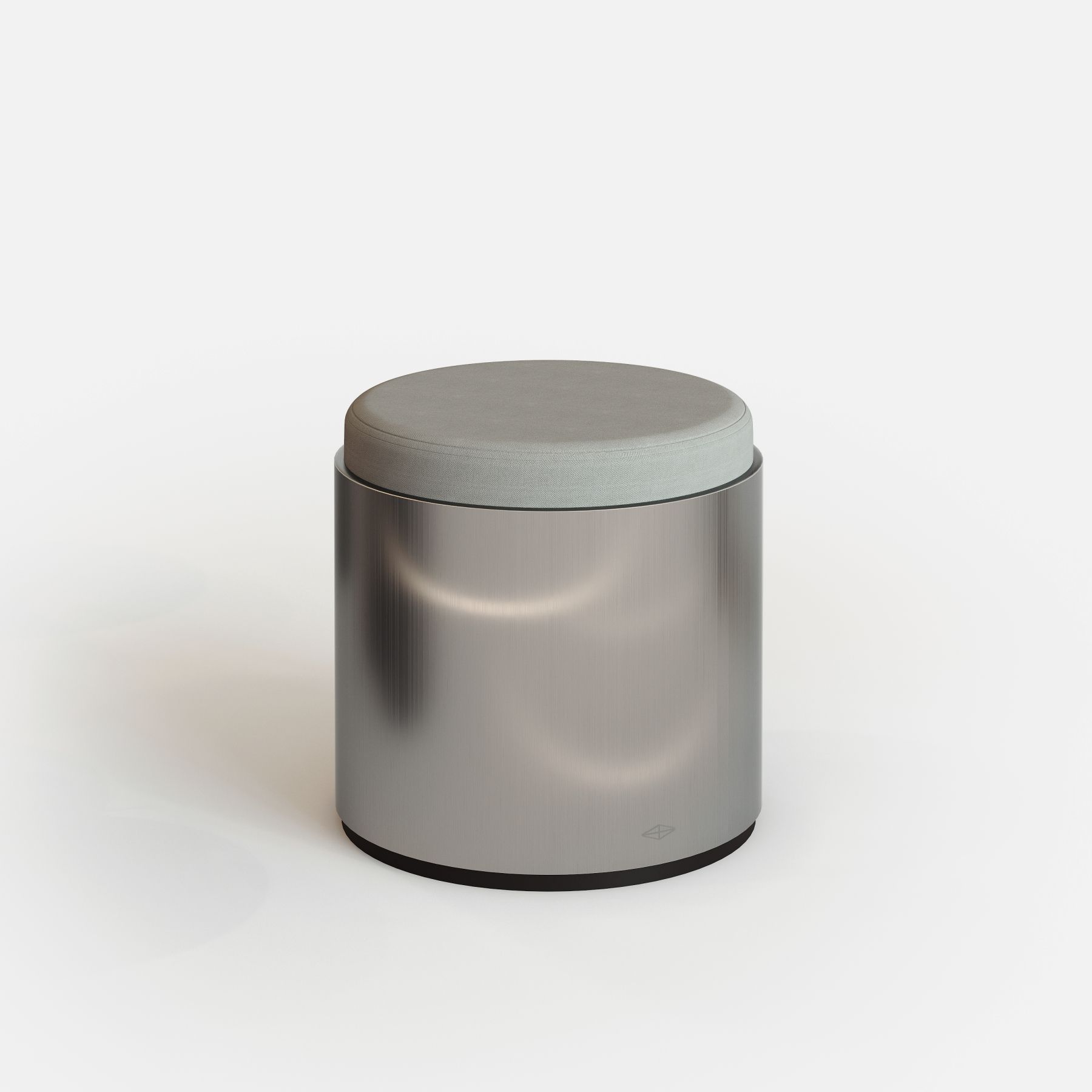 Каркас: полированная нержавеющая сталь (покрытие нитрид титана), МДФ в эмали RAL, сталь, березовая фанера, сосновый брус, ППУ, холлофайбер