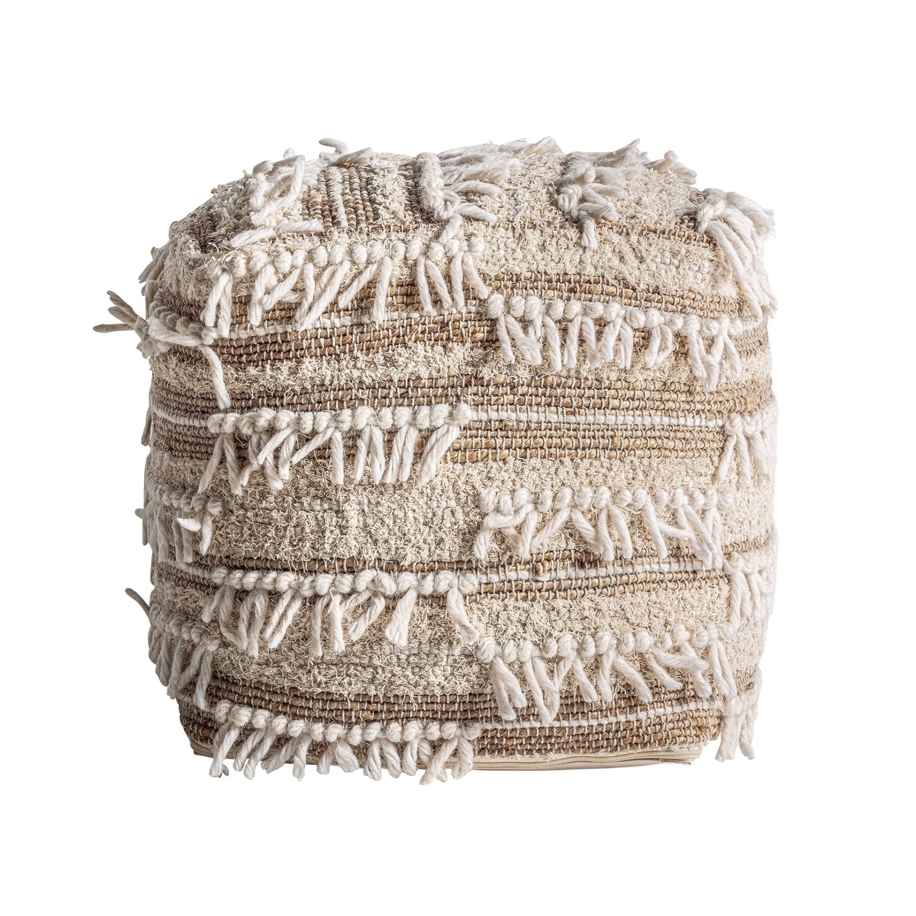 Подставка для ног Zuri, коричневые тона, стиль бохо. Изготовлен из джута в сочетании с хлопком и шерстью. Съемное изделие.