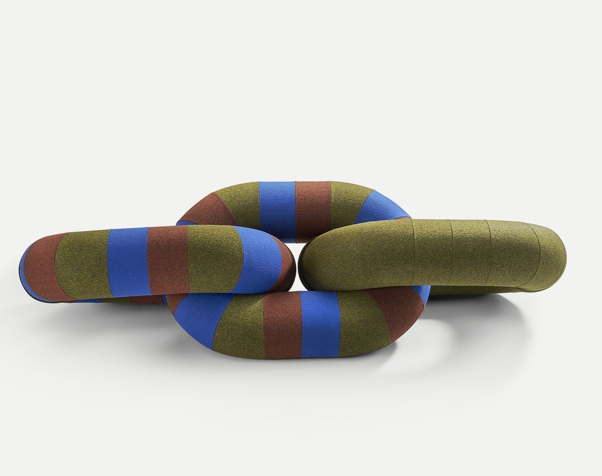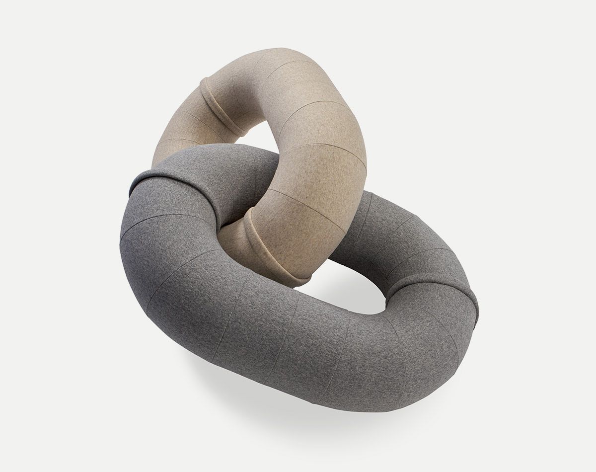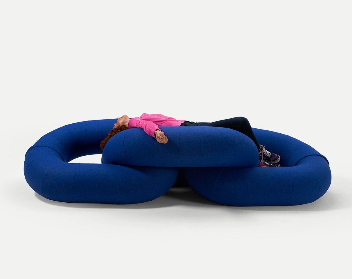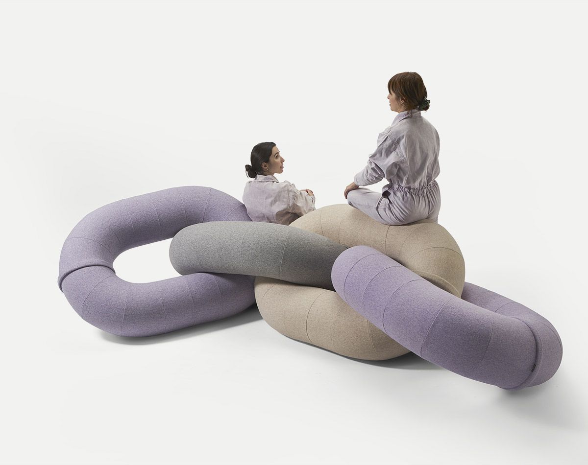 Этот творческий дуэт переосмысливает то, как мы сидим, на основе извилистых объемов цепочки. Масштаб здесь играет ключевую роль, так как он может превратить повседневный предмет в скульптуру.