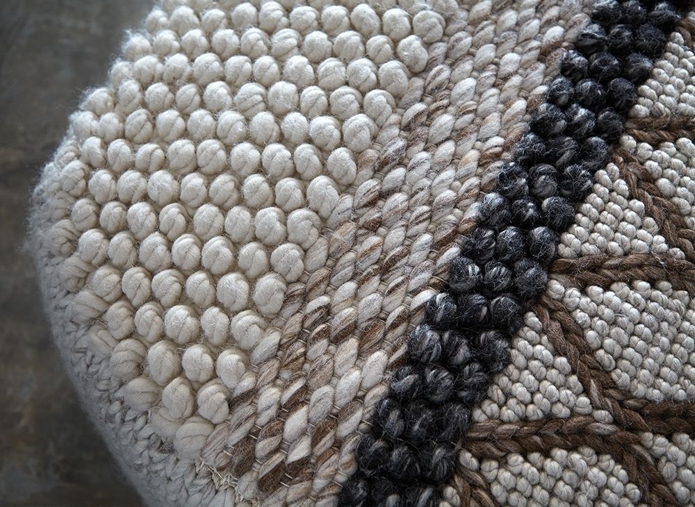 Если вы решили купить очаровательный ковёр Mini Caramelo, не пропустите пуфик из этой серии. Его скромные размеры — 69 х 90 х 35 сантиметров — ничуть не умаляют размера его обаяния. Под шерстяным чехлом скрывается деревянный каркас и плотный поролоновый наполнитель. Такая конструкция позволяет пуфу уверенно держать форму и при этом оставаться мягким — на нём в самом деле удобно сидеть. Причудливые вязаные узоры — дело рук опытных мастеров, которые создают Caramelo в традиционных ткацких техниках, как делали это многие поколения до них. Приятно, когда в доме находится вещь такого высокого класса, хранящая тепло ручного труда.