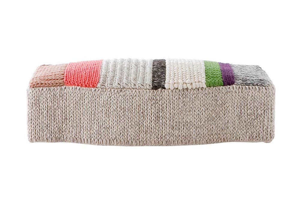 В дополнение к ковру Campana GAN стоит купить пуфик из той же коллекции. Его чехол соткан вручную из 100% шерсти. За устойчивость конструкции отвечает деревянный каркас. В качестве наполнителя производитель использует поролон плотностью 30 кг/м3. При всей уютности внешнего вида пуф отличается долговечностью и великолепно проявляет себя в быту. Стильный пуфик Campana доступен в двух расцветках: один вариант — в естественных, неброских оттенках; другой — с яркими полосками кораллового, фиолетового, зелёного цветов.