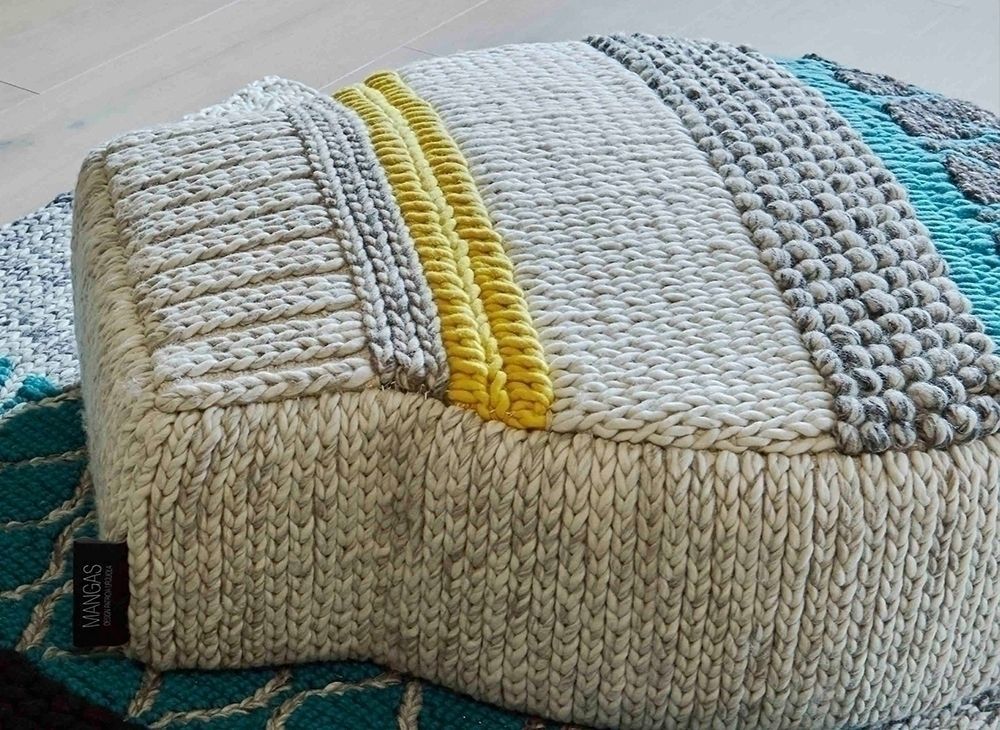 В необыкновенной коллекции Mangas Original Патриция Уркиола никак не могла ограничиться коврами. Этим очаровательным предметам интерьера нужны были пуфики под стать. Так появились пуфы нестандартной формы Globo, на которых очень приятно располагаться самому и приглашать расположиться друзей. Globo изготавливаются вручную на ткацких станках, поэтому каждое изделие в некотором роде уникально. Деревянный каркас наполнен плотным поролоном (30 кг/м3), который великолепно держит форму. Верх соткан из 100% шерсти. Размеры пуфа: 100 х 90 сантиметров, высота — 43 сантиметра. Вы можете купить пуф Globo в двух расцветках: с разными оттенками серого или с вкраплением ярких цветов — жёлтого и лазурного.