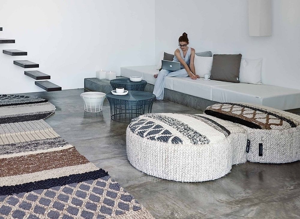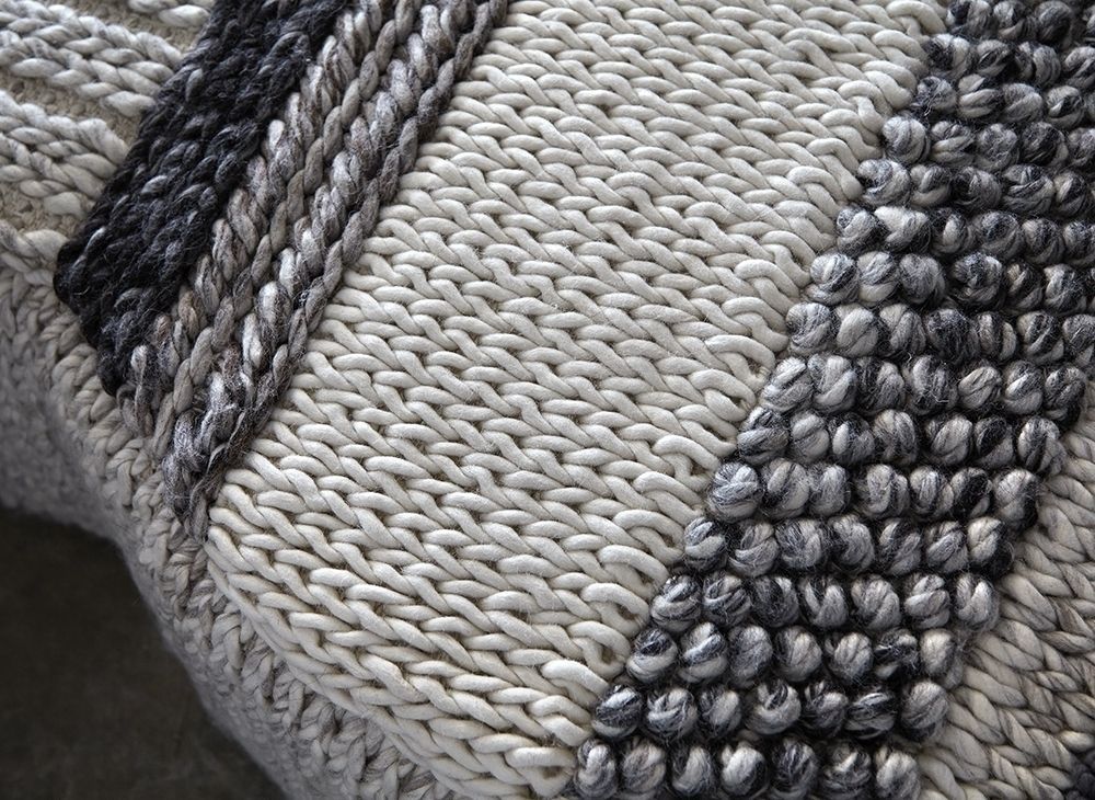В необыкновенной коллекции Mangas Original Патриция Уркиола никак не могла ограничиться коврами. Этим очаровательным предметам интерьера нужны были пуфики под стать. Так появились пуфы нестандартной формы Globo, на которых очень приятно располагаться самому и приглашать расположиться друзей. Globo изготавливаются вручную на ткацких станках, поэтому каждое изделие в некотором роде уникально. Деревянный каркас наполнен плотным поролоном (30 кг/м3), который великолепно держит форму. Верх соткан из 100% шерсти. Размеры пуфа: 100 х 90 сантиметров, высота — 43 сантиметра. Вы можете купить пуф Globo в двух расцветках: с разными оттенками серого или с вкраплением ярких цветов — жёлтого и лазурного.