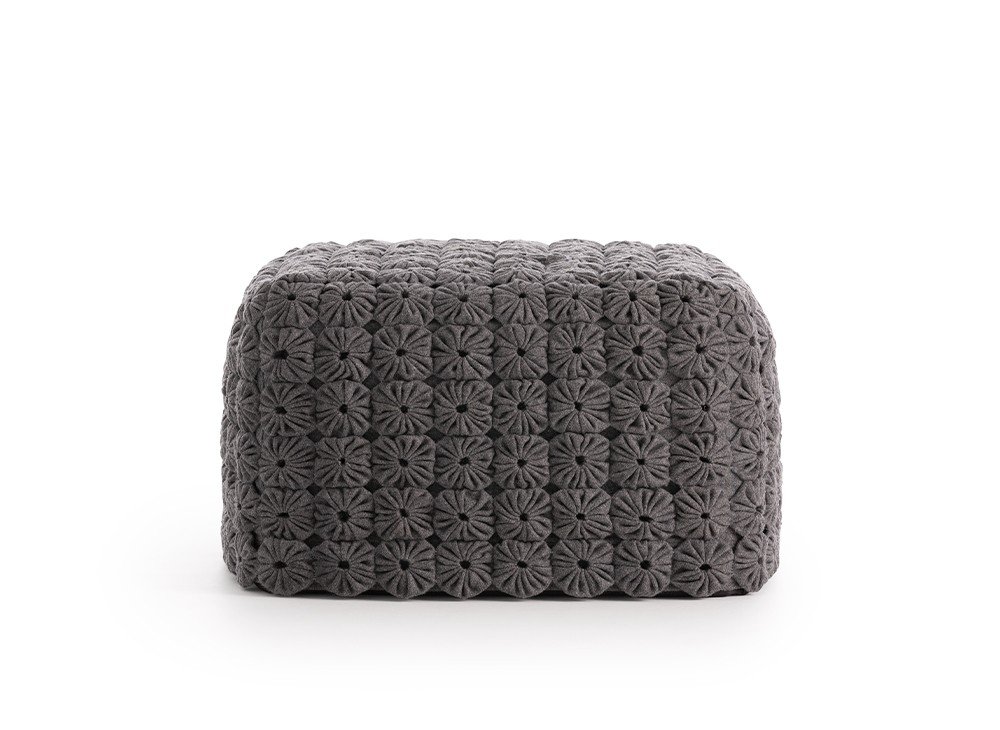 Это пуф цвета антрацит из коллекции Momos, изготовленный с использованием нашей техники ручной вышивки шерстью антрацитово-серого цвета. Дизайн Хосе А. Гандиа-Бласко Каналеса, съемный чехол, дополненный соответствующим ковром и подушкой, идеально подходит для создания неформальной обстановки.