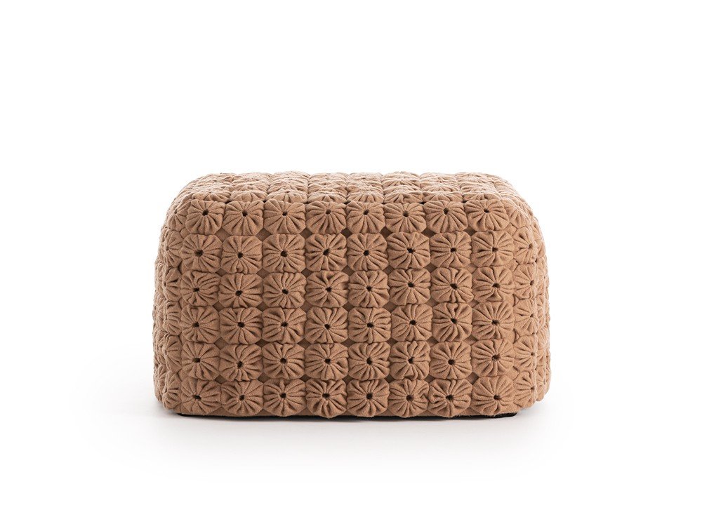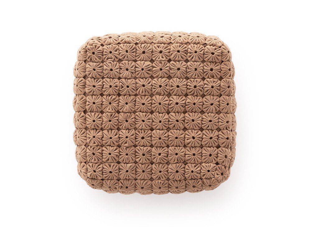 Это пуф «Верблюжий» из нашей коллекции Momos, разработанный Хосе А. Гандиа-Бласко Каналесом. В комплект входят соответствующий ковер и подушка, идеально подходящие для создания неформальной обстановки. Он изготовлен с использованием нашей фирменной техники ручной вышивки шерстью верблюжьего цвета и имеет съемный чехол.