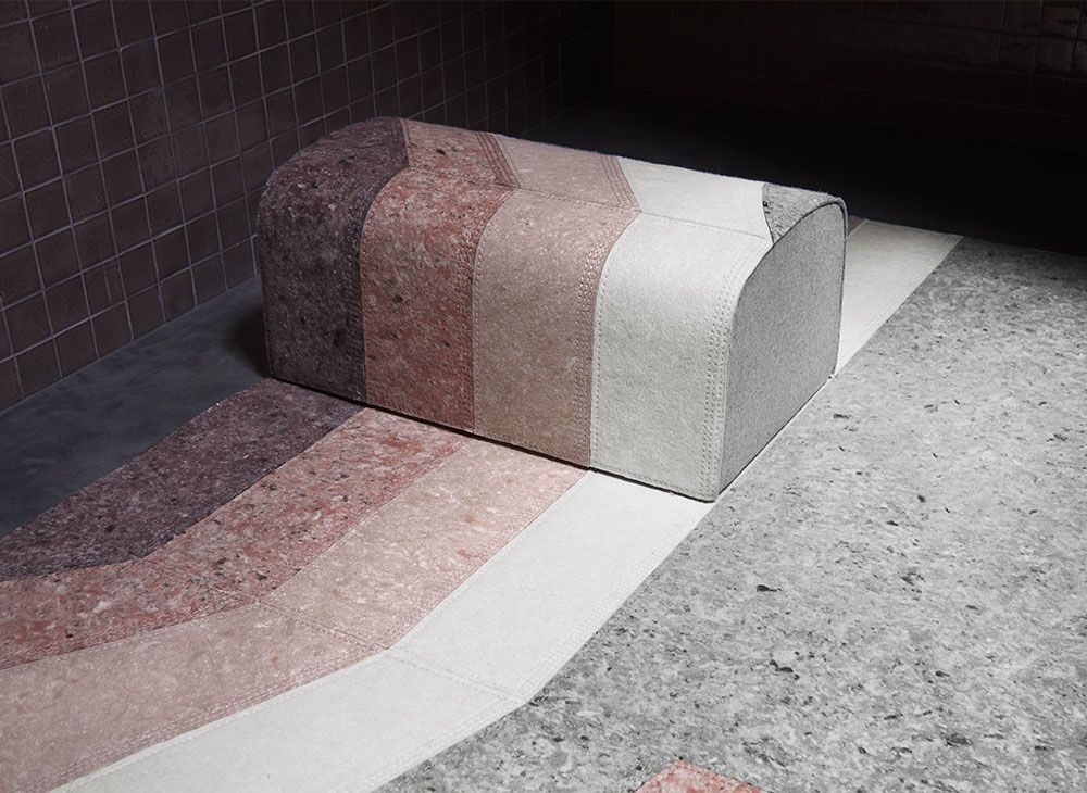 Покрытие из войлока (75% шерсть + 25% вискоза) и вышивка из вискозы. Основа - поролон на деревянной основе.