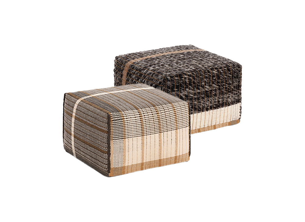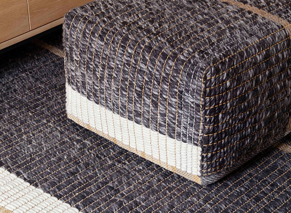 Новая и сложная техника ручной ткацкой обработки, специально разработанная для этой коллекции, сочетает нити разной толщины и материалов, одновременно создавая две ОБРАТИМЫЕ отделки: 100% натуральную