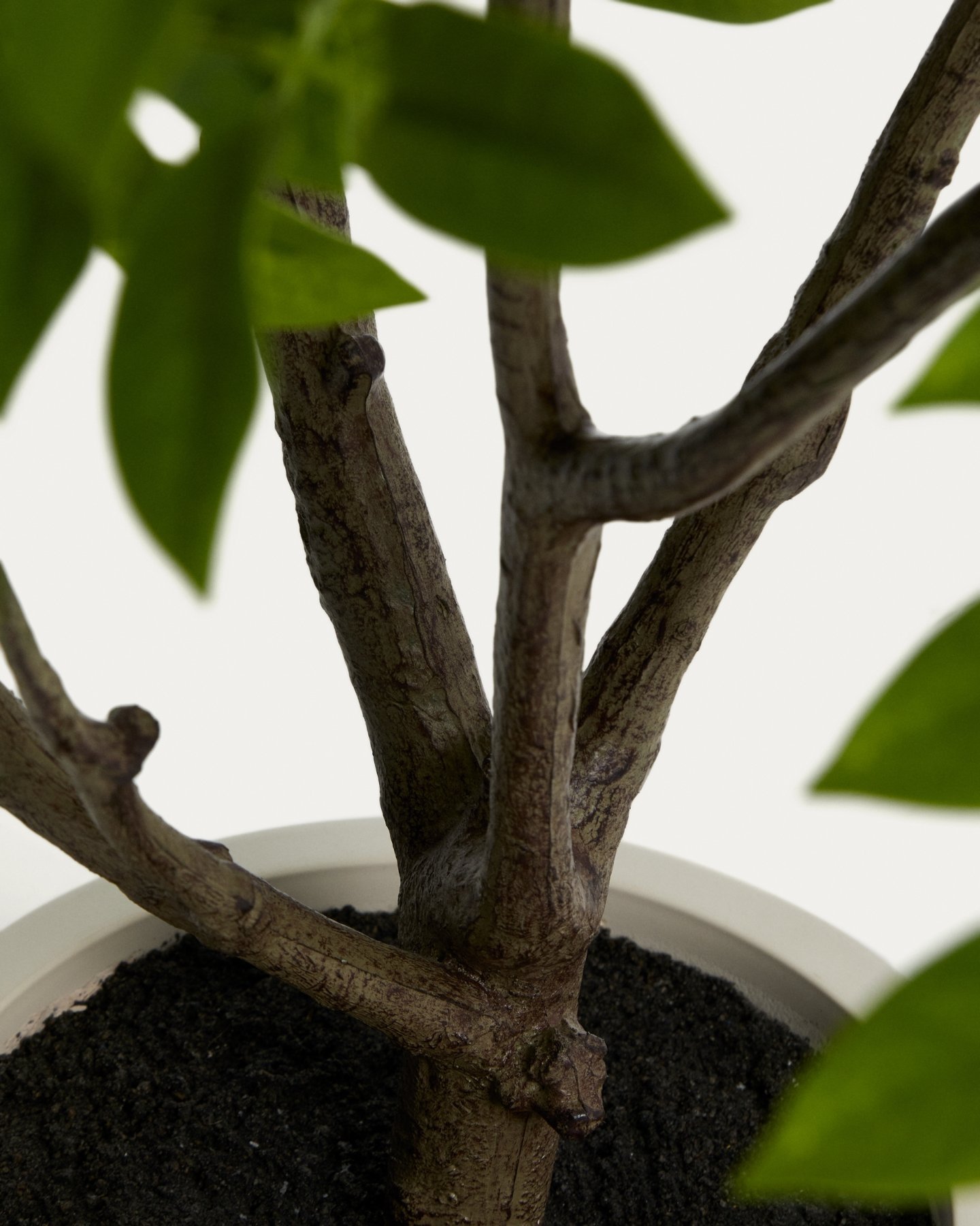Искусственное дерево Rhus выделяется своими листьями в оттенках зеленого и коричневого, реалистично выглядящими, что добавляет глубины и детализации. Оно изготовлено из комбинации PEVA, полиэтилена, стали и полипропилена — материалов, обеспечивающих долговечность. Основание содержит песок, цемент и пенопластовый наполнитель для устойчивости. В комплект входит белый цилиндрический горшок для растений, хотя его можно разместить в любом другом декоративном кашпо. Уход прост и требует лишь периодической чистки влажной тряпкой.