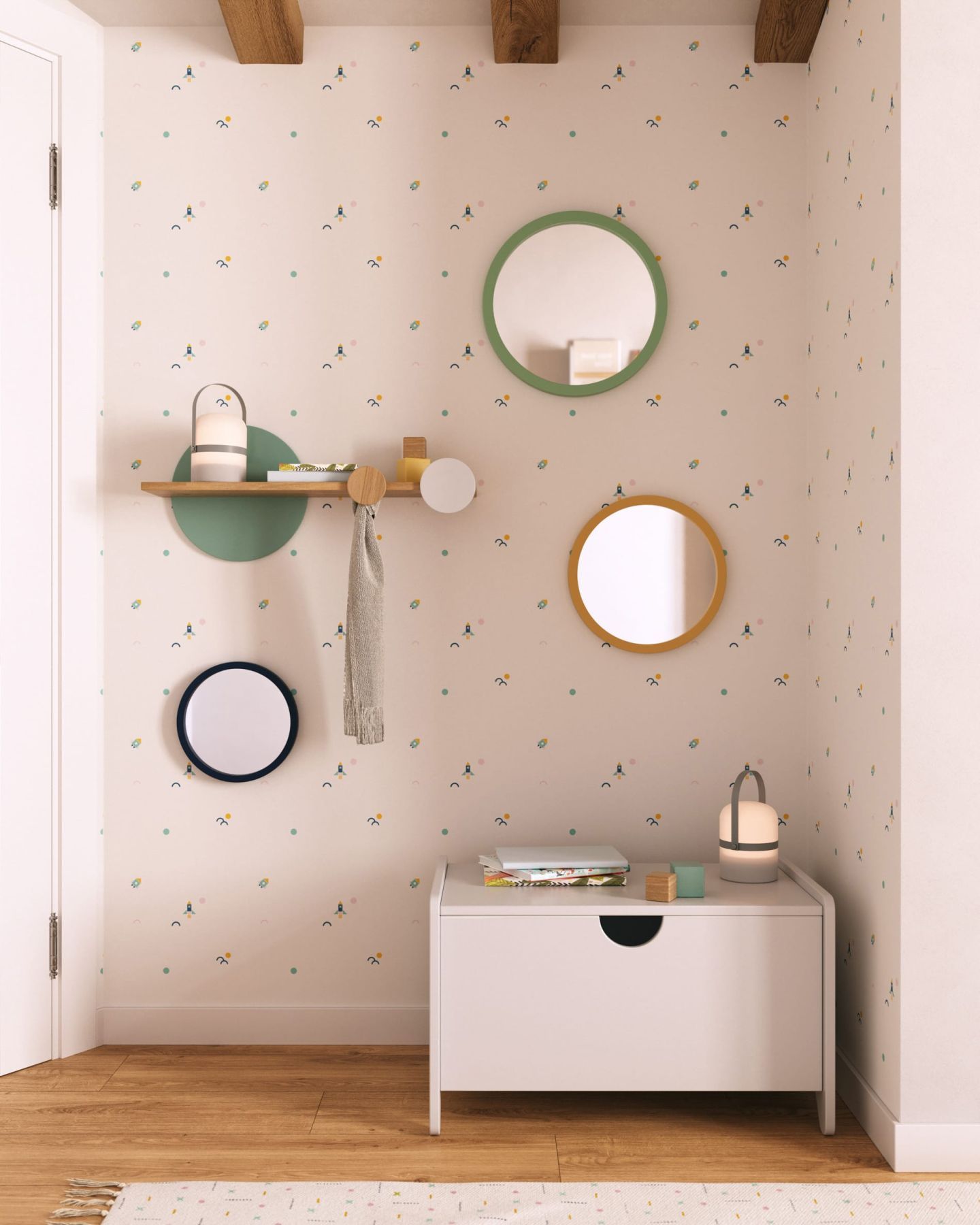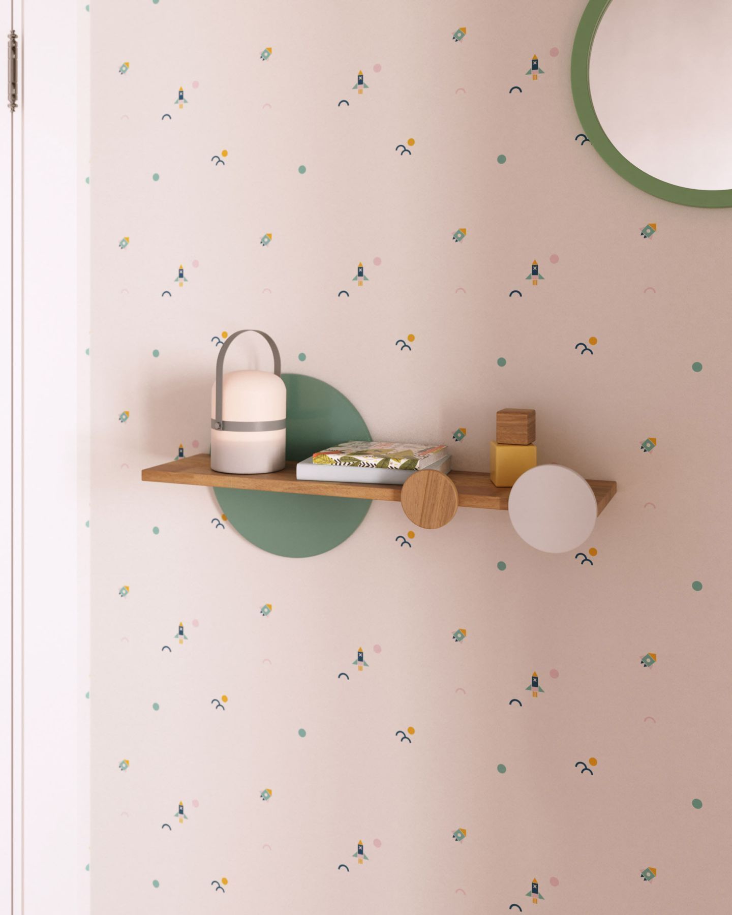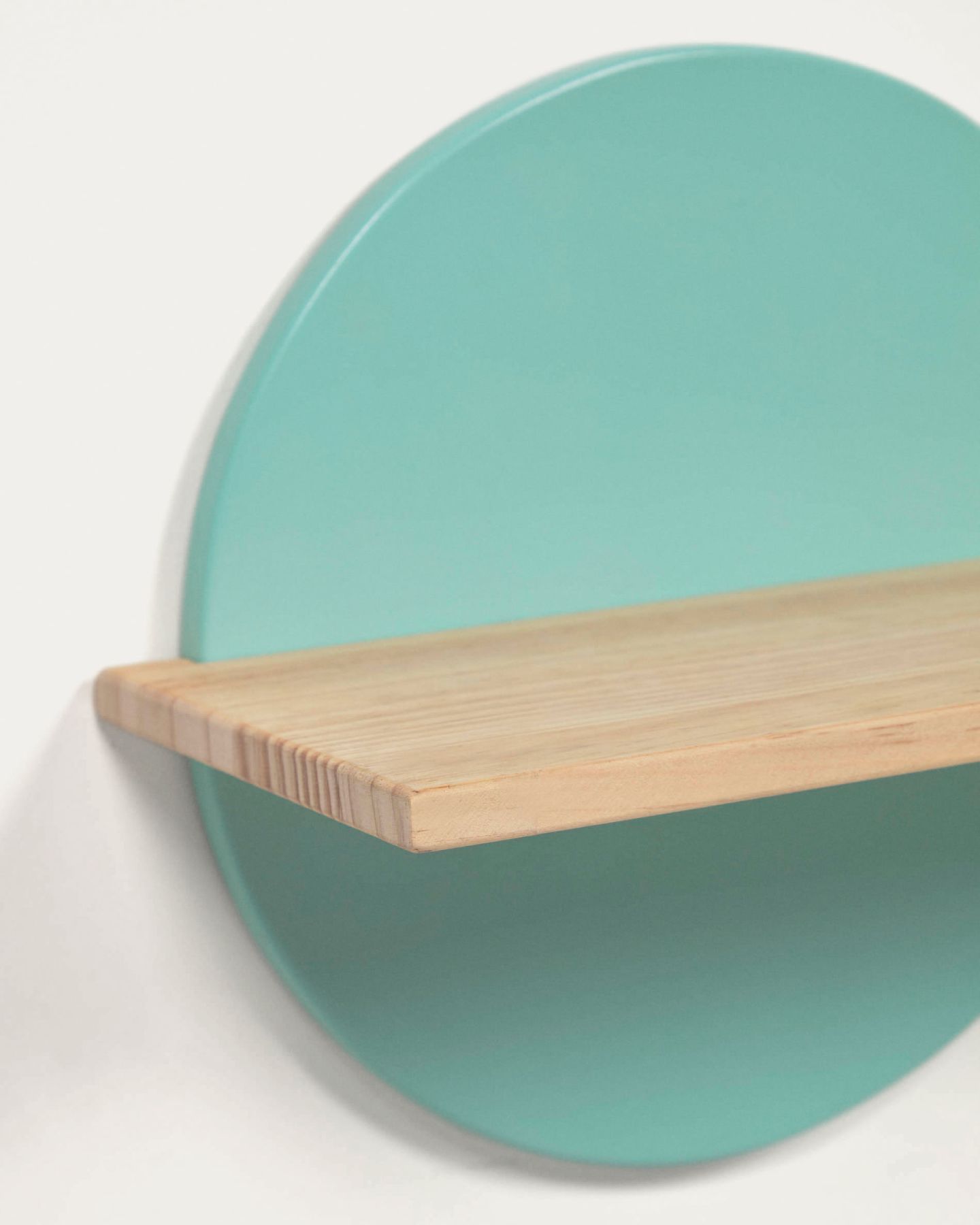 Полка из массива сосны с натуральной отделкой и деталями из МДФ в белом и бирюзовом лаке. Краска на водной основе - подходит для самых маленьких.