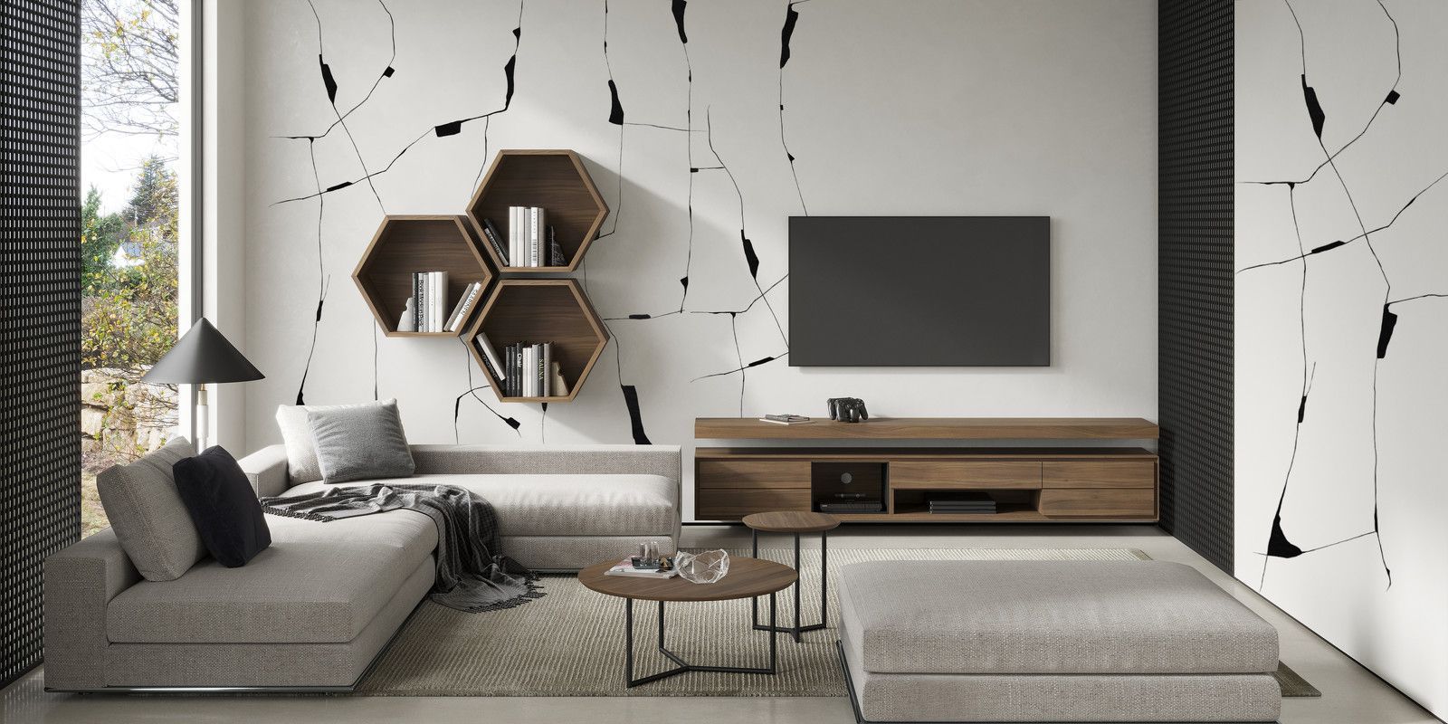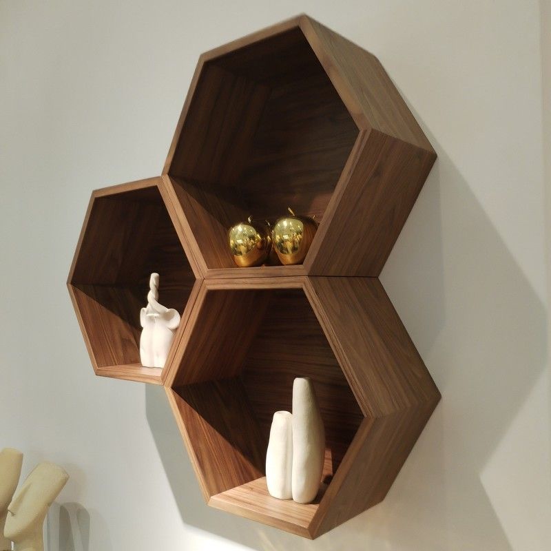Полка выполнена в виде шестигранника, такая форма придаст оригинальность интерьера, а так же позволяет сочетать модули между собой создавая уникальные композиции.