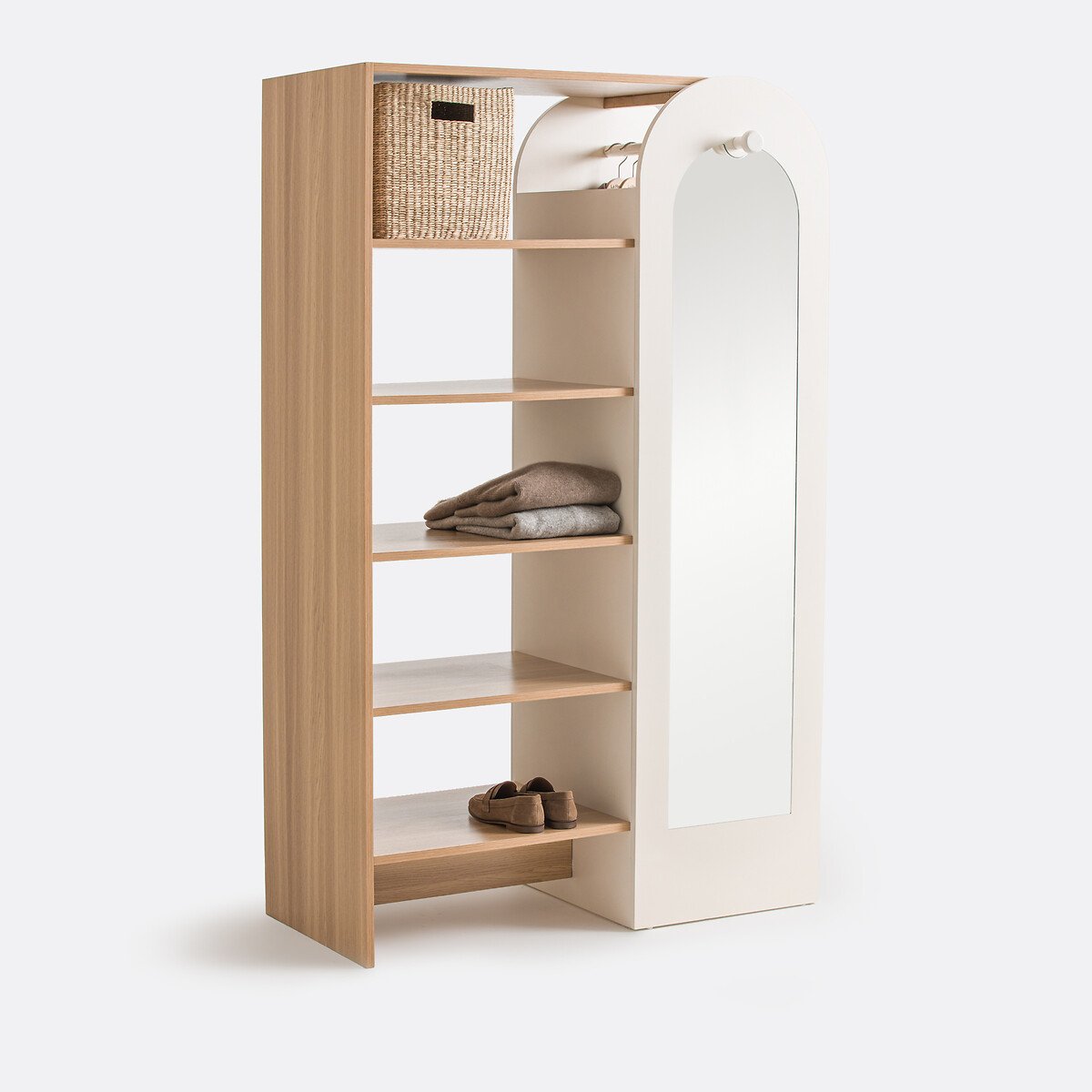 Современный. Компактный. Функциональный. Гардероб Zaria сочетает 7 полок, 1 отделение с двухсторонней перекладиной справа налево и большое зеркало с крючком. Чтобы сэкономить много места без потери пространства.
