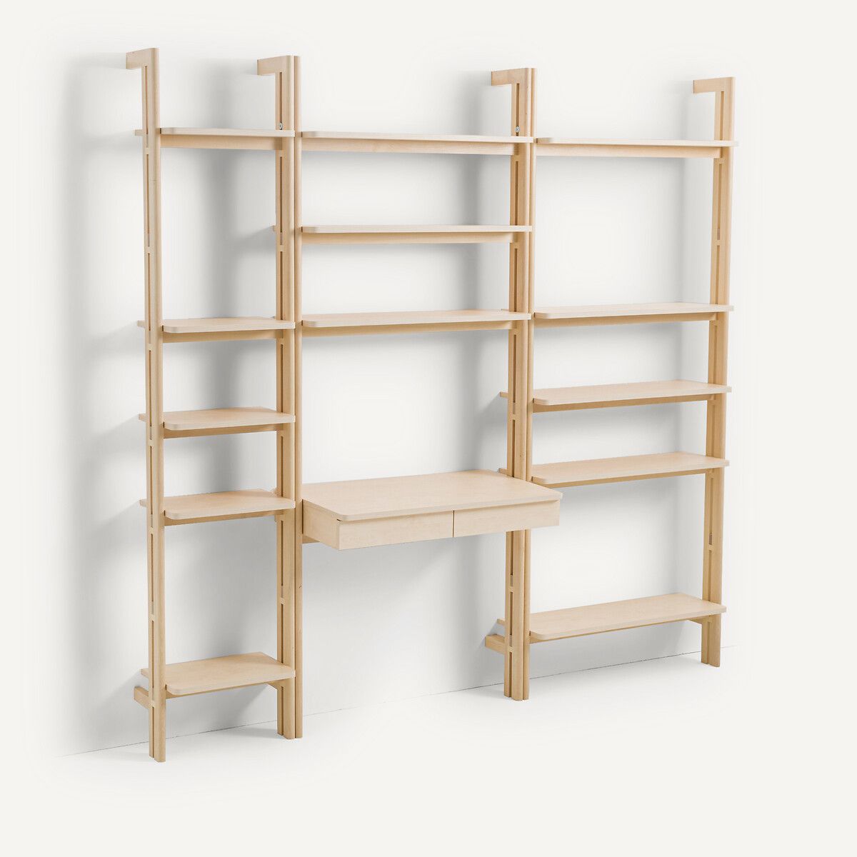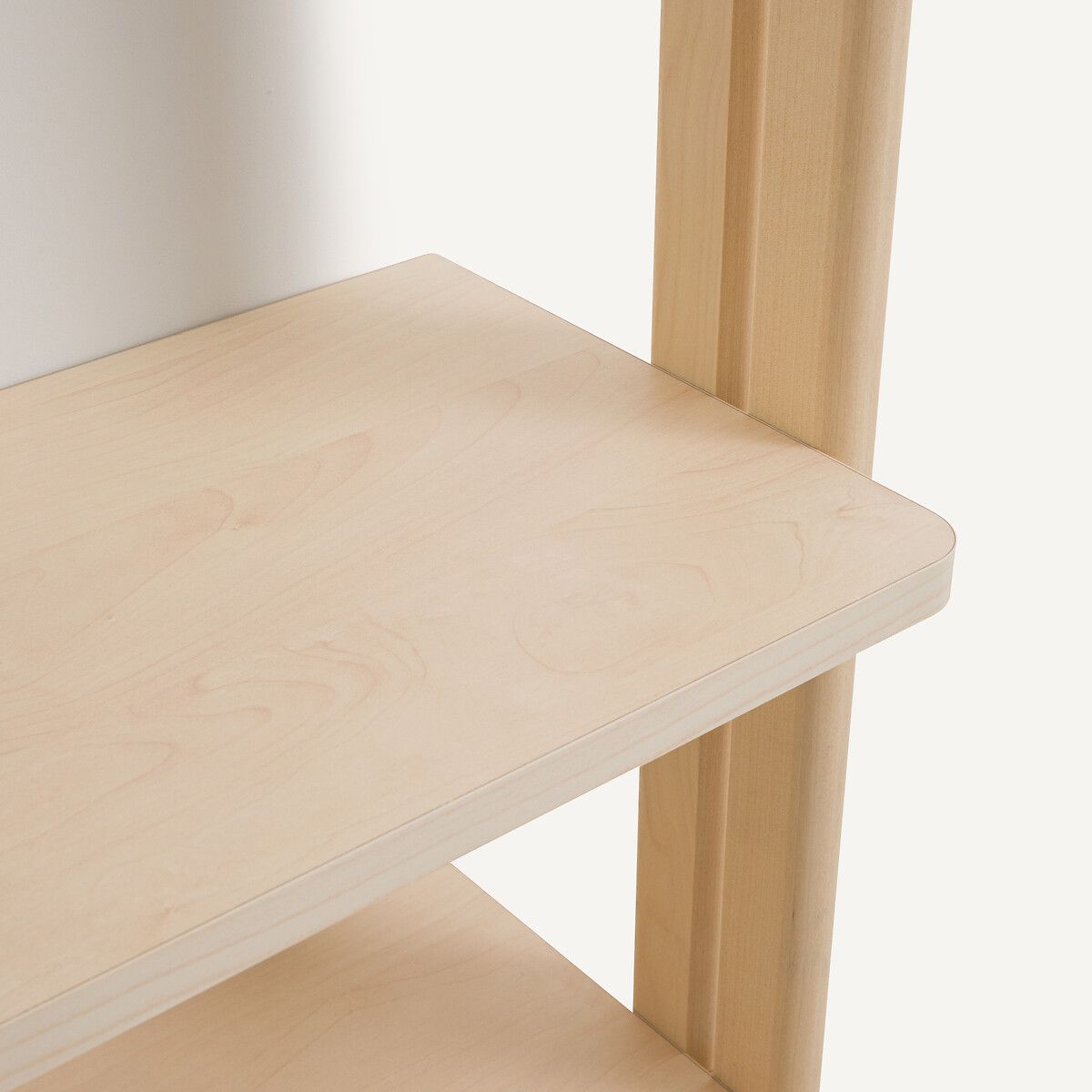 — 5 полок из древесностружечной плиты и меламина березового цвета.